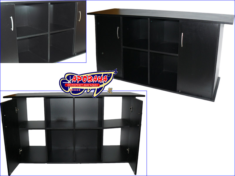 Каркас тумбы выполнен из 18 мм ДСП "Эггер" черного цвета. Боковины и цокольные планки - глянцевые, внутренности - матовые. Фасады и окантовка аквы из 16 мм МДФ. Оклеены глянцевой пленкой "Черная лилия" пр-ва Кореи. Дверные петли с доводчиками, дабы детский спецназ в количестве 4 человек не уничтожил фасады раньше времени. Внутренняя сторона крышки оклеена пленкой "металлик". Освещение в процессе созидания. На сегодняшний день светят две балки по 36 Вт Aqua-glo и Fluora. Передний план Осрам Daylight 18 Вт с гермодержателями Vossloch и ЭПРА . Результат более чем скромный, поэтому надо изменить спектральный состав. В проекте светодиодный "рассвет-закат", хотя из ламп накаливания можно было-бы за день склЕпать.