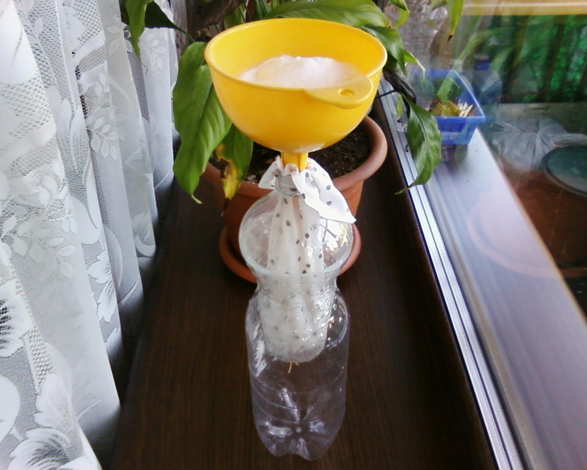 До чулка постоянно сталкивался с проблемой когда кислота капает постоянно в одно место, проделывает в соде дырку насквозь (воронку), а вокруг нее нетронутая сода. Вот потом и начинаешь наклонять бутылку то вправо то влево чтобы выработать склоны. Меня это напрягало.