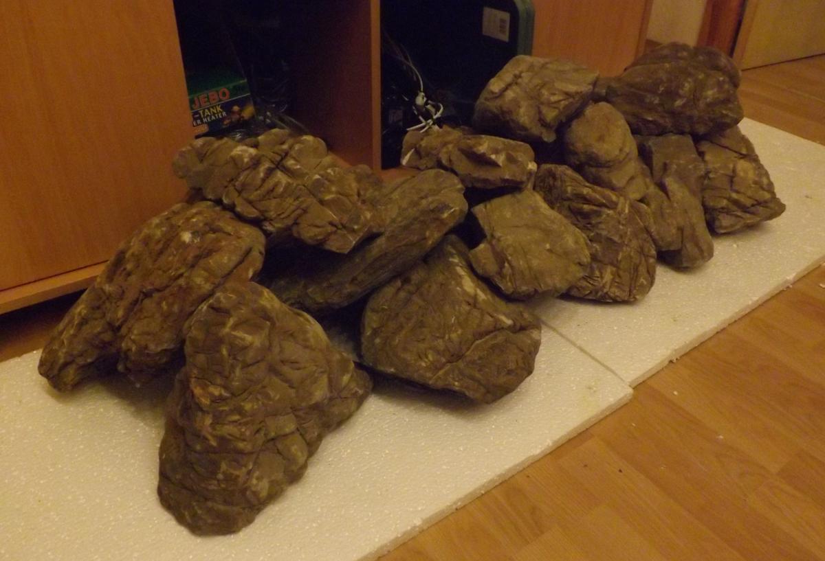 Скотчем зафиксировал пвх к экп, дабы во время выкладки камней и расстановки композиции, пвх не ёрзал по экп. В воде скотч конечно отклеится, но то уже по цимбалам, камни будут установлены.