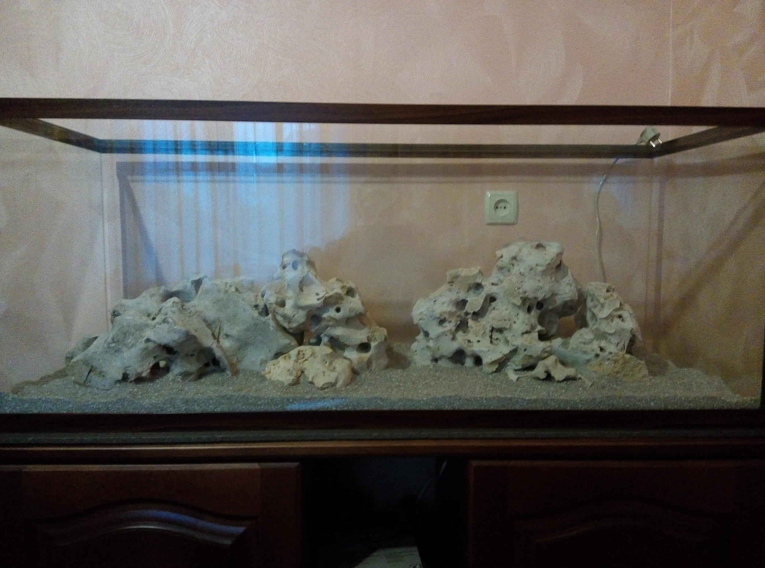 Спасибо! Жаль не получилось сделать правую горку выше...нашел положение в котором камни стоят устойчиво,смотрятся очень красиво и высота получалась 40см.,при высоте аквариума 50см. Выложил всё на полу, а когда начал последовательно камни переносить в аквариум пол часа проигрался, но вот того положения камней не смог "поймать".