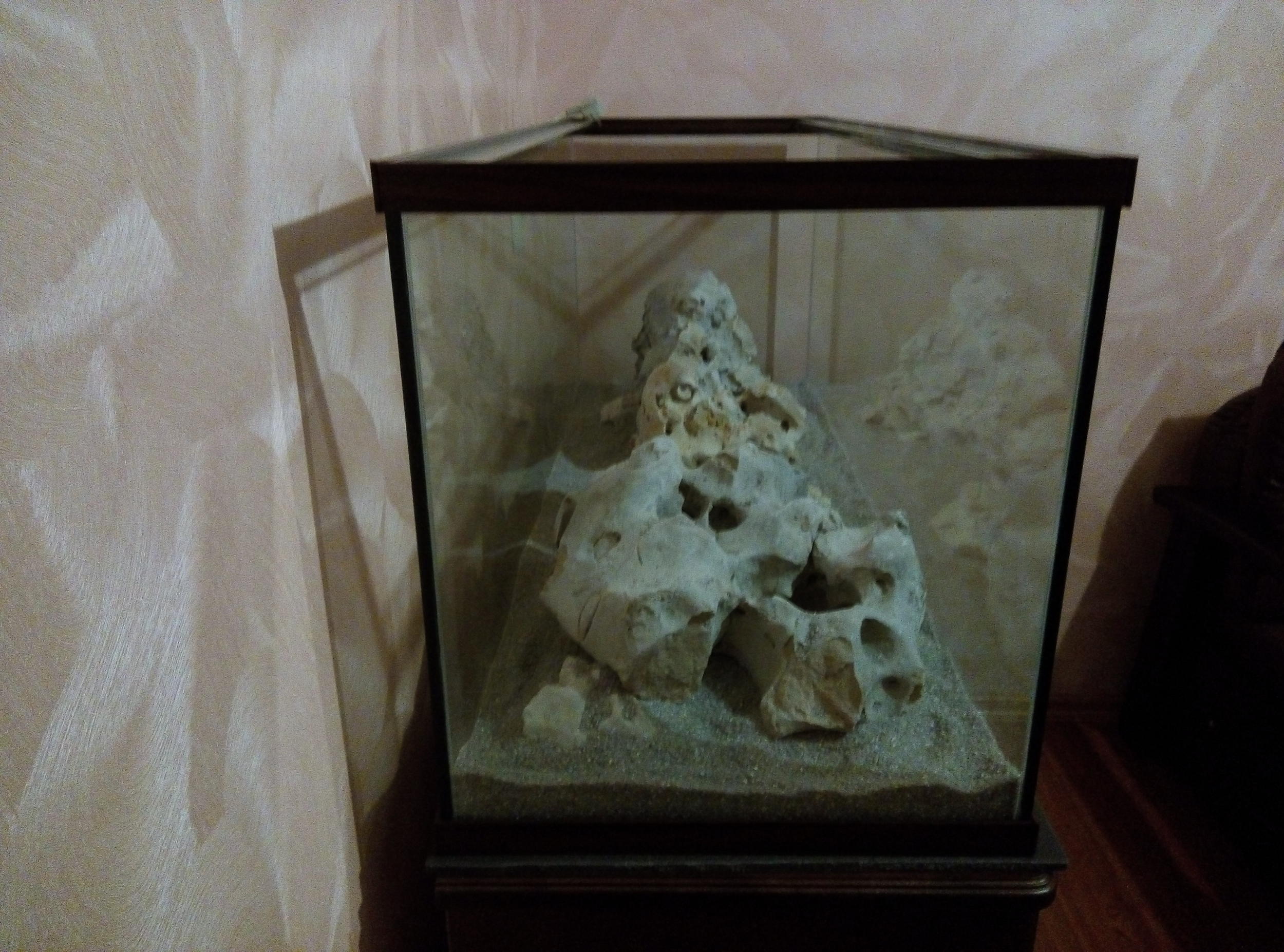 Крышка -вернее покровное стекло будут сегодня. Освещение - будет светодиодное будет чуть позже. Также не хватает фона - есть 2 задумки, но так как не выбрал какая лучше, поэтому первую неделю-две будет без фона.