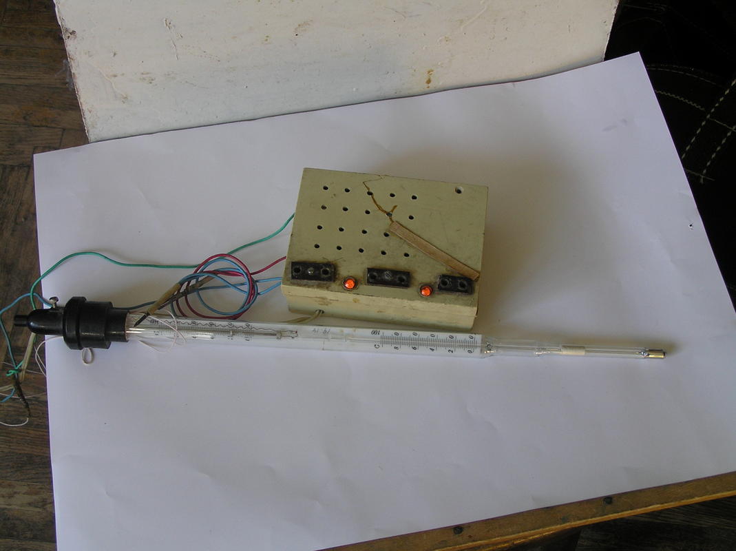 Вот вспомнилсь еще.В.В.Ветров делал и продавал термореле для акв на контактных термометрах.Контактный термометр это ртутный,ОЧЕНЬ точный термометр,в котором есть возможность регулировать температуру.Магнитная гайка движет штырь-иглу внутри капиляра с ртутью термометра.Устанавливаем этот штырь на нужной температуре.К нему идет усилительно-исполнительное устройство.Точность его достигала 0,1грд и конечно, была избыточной.РЕЛЕ В.В.Ветрова ,думается, уже нет ни у кого.Но в те же времена я делал подобные себе .Моему реле 35-40 лет.Конечно работает не каждый день.И корпус из полистирола треснул от времени.Но,в рабочем состоянии и на сегодня. Добавлю также,что делал на 2 канала,т.е. можно было работать на два аквариума независимо.Т.е. от двух ртутных контактных термометров,как датчиков температуры.Вот только хороших клемок для подключеня нагревателей(грелок)тогда трудно было достать.