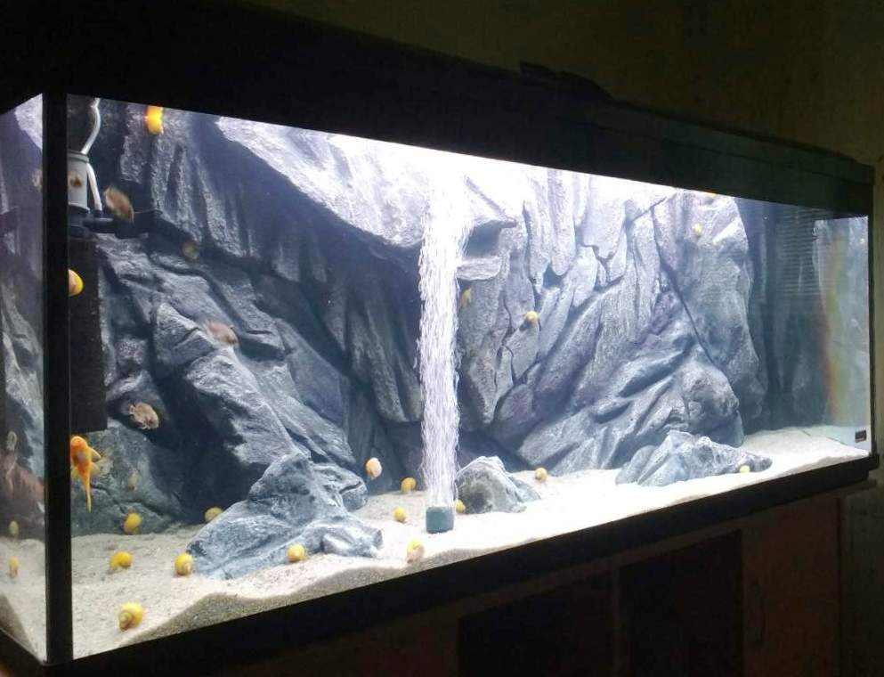 Позавчора замовник прислав фото-як, фон ,який я зробив -виглядає в його акві. Розмір композиції 1450 х 500 + 3 камінчика