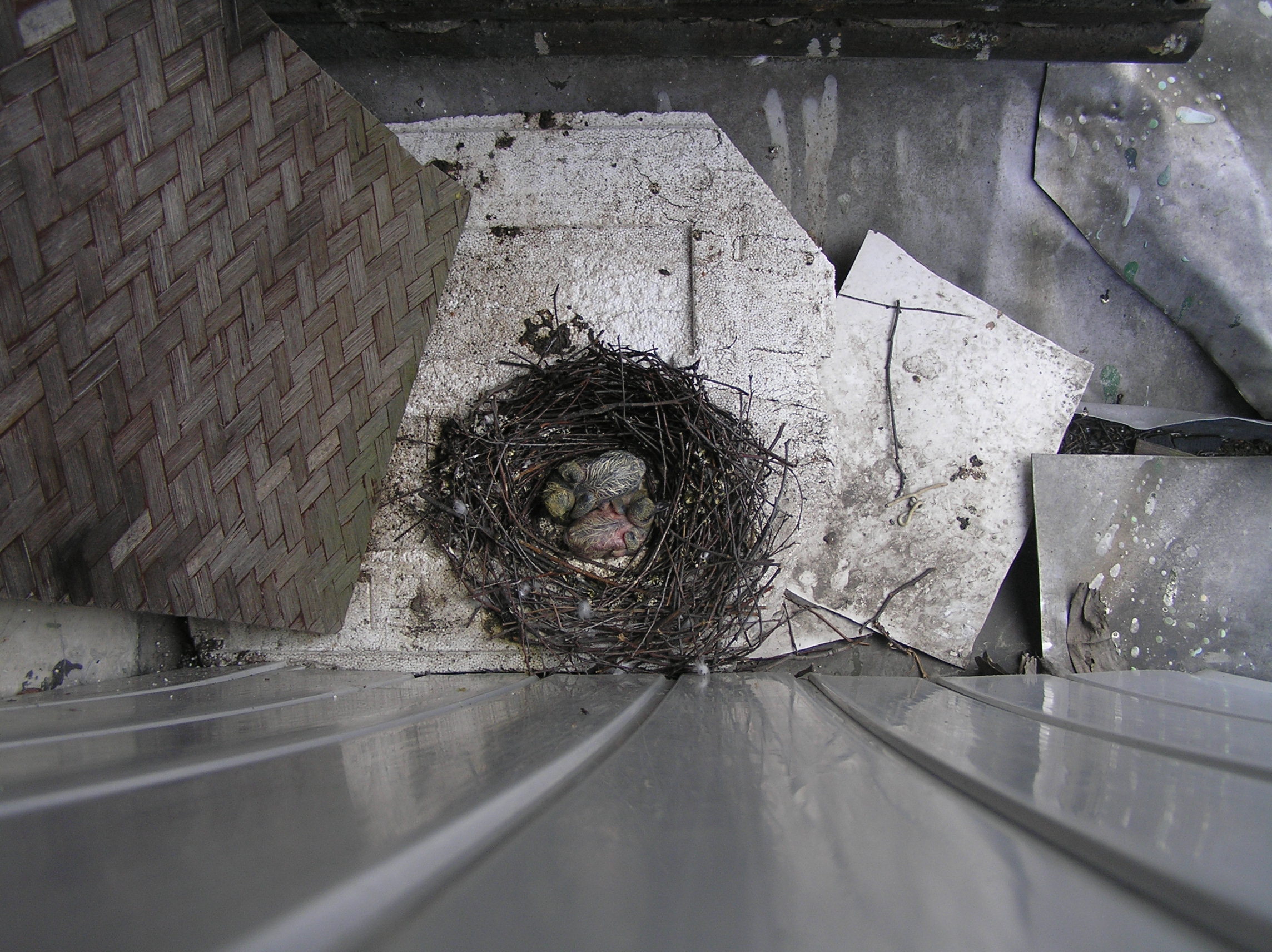 ...Кстати ,заглянул сегодня в гнездо голубей между балконами.(см п. 37)...А там -- уже птенцы.Быстро они развиваются,несмотря на холодное лето...