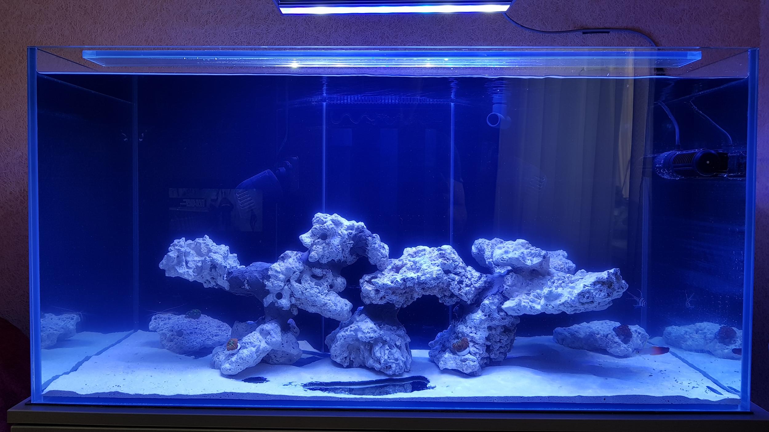 Запустил. Соль TM, СРК, немного живого песка, чтобы чуть покрыть дно, 1 литр Siporax в самп, бактерии для старта Bacteria C MARINEKRAFT