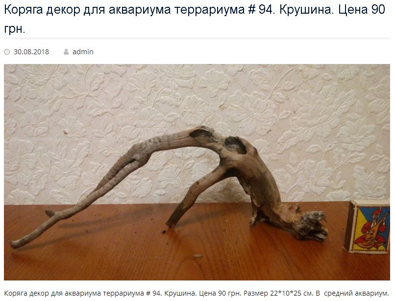 ВНИМАНИЕ! Остерегайтесь недобросовестных продавцов-аматоров. Коряга при продаже должна быть ИСКЛЮЧИТЕЛЬНО: сухой, обработана механическим способом (вручную), вырезана гниль, без коры, без грязи, прописано из какого дерева. Как правило продаются коряги, которые просто обработали щеткой и сразу проварили несколько минут, или обдатые кипятком, или просто промыли струей воды. Будьте внимательными при выборе коряги! ОСТЕРЕГАЙТЕСЬ ЧЕРНЫХ, МОКРЫХ, ГРЯЗНЫХ И НЕОБРАБОТАННЫХ ГНИЛЫХ ТОПЛЯКОВ!!! Берегите свои нервы и здоровье Ваших подопечных.