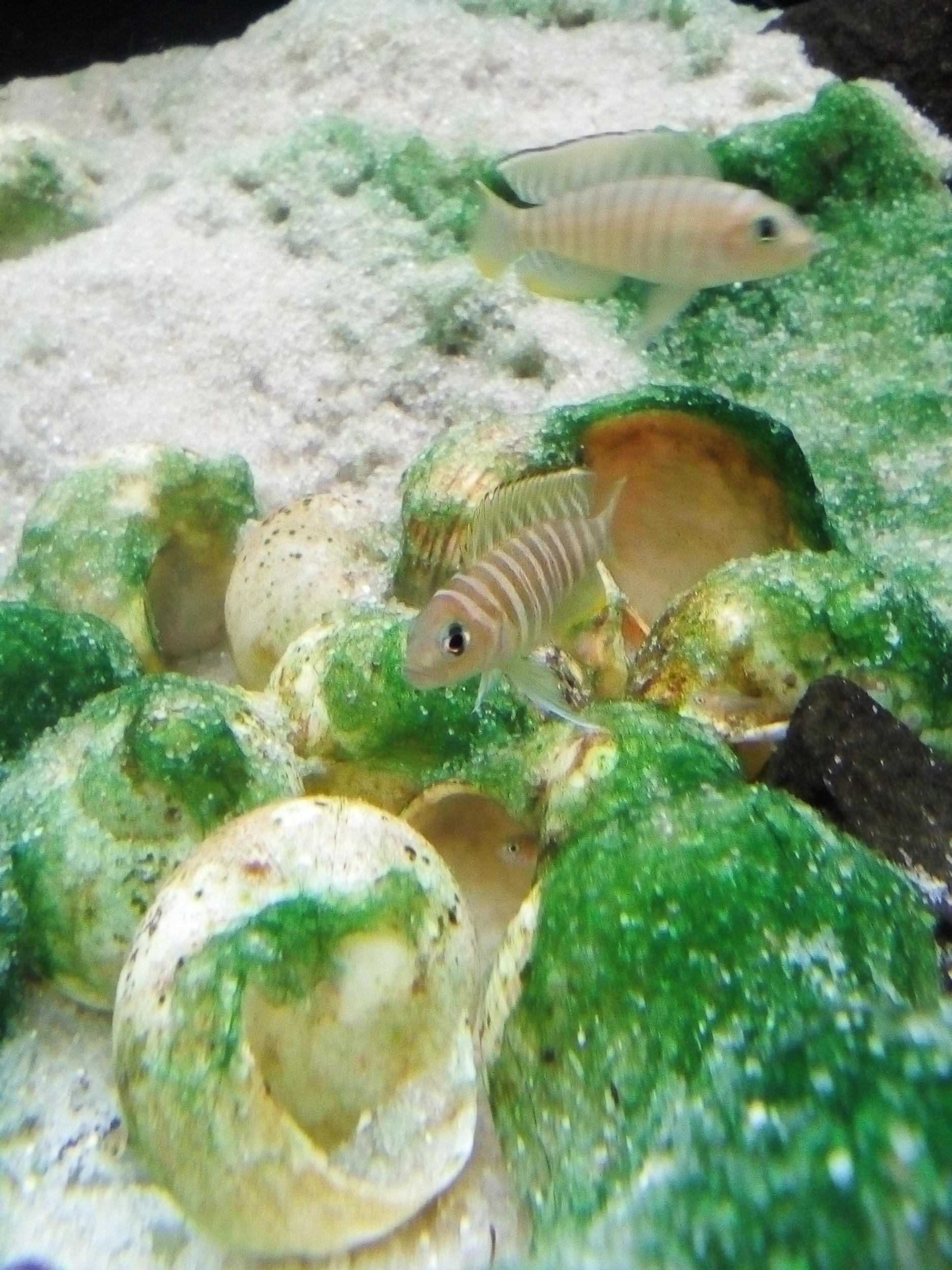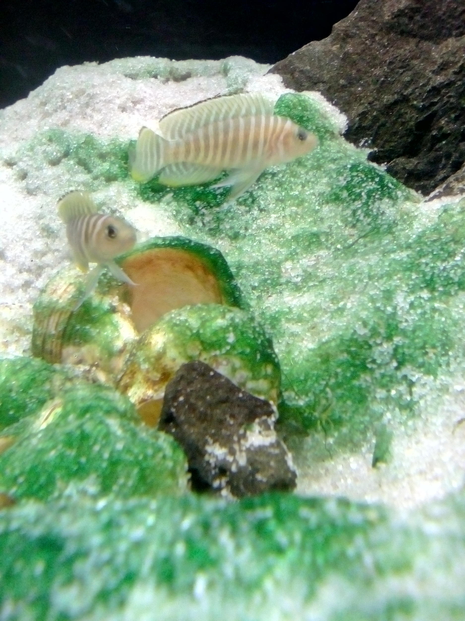Просто є два , які не порівну, але поділили територію, і намагаються не запливати на територію сусіда. Потім визначився ще один, якого вигнали до фільтру, а тепер здається ще один вимальовується...