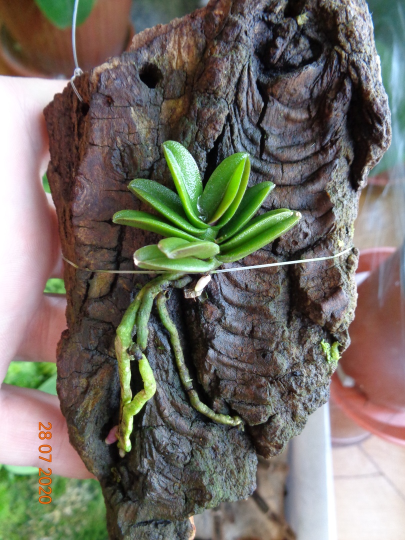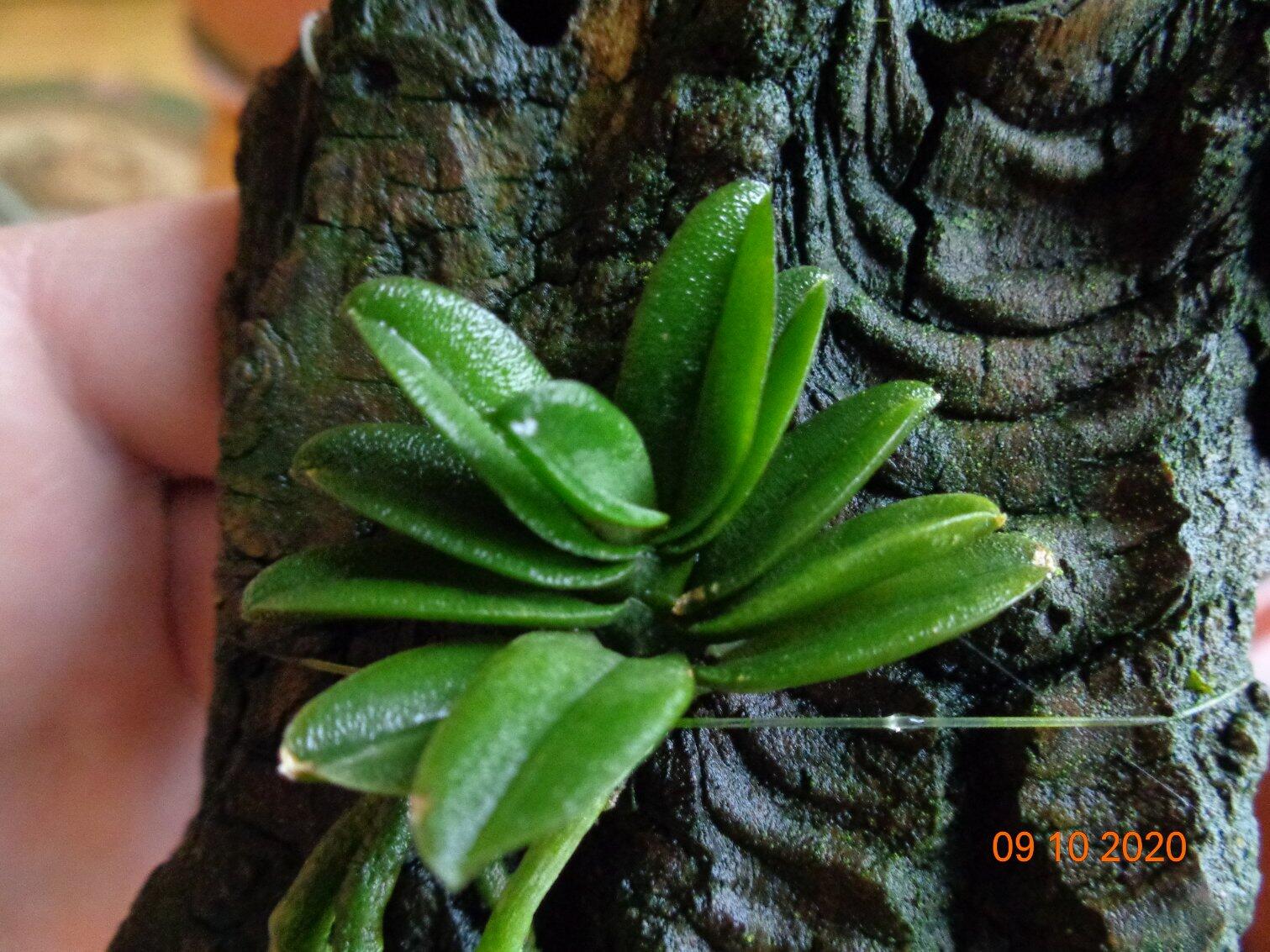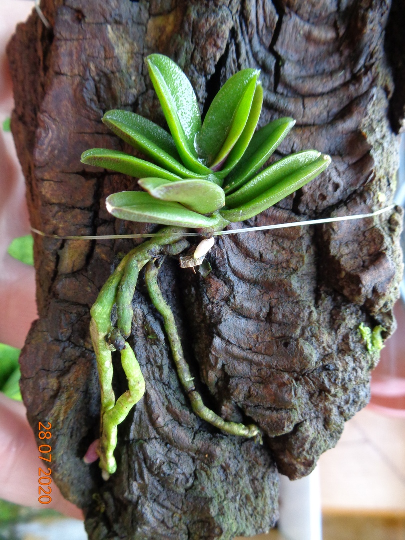 Schoenorchis fragrans доращивает второй лист вырастил новый корень аж но низа коры.. и растит второй корень