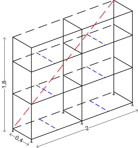 2) Диагонали – для укрепления конструкции (красная) (?) ; поперечные (синие) нужны?