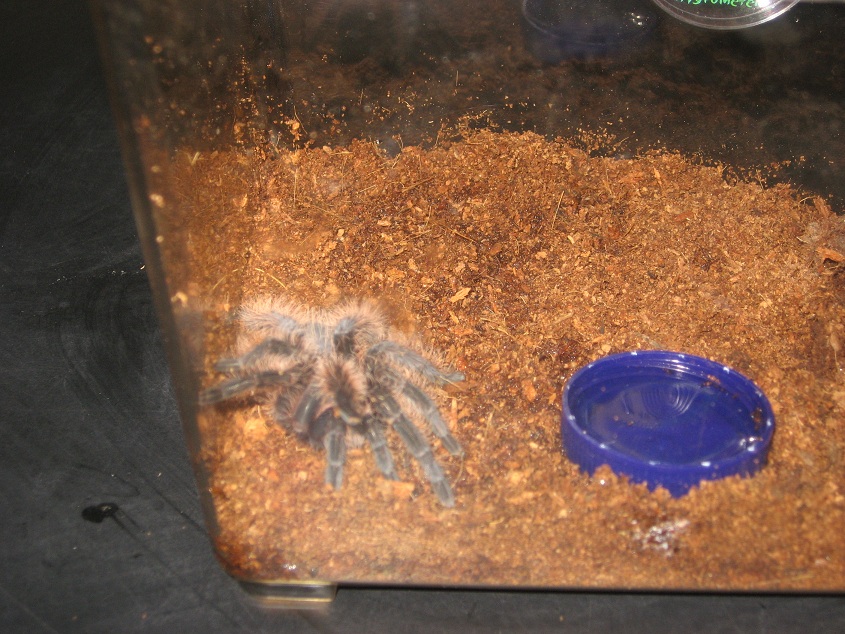 Мою старшую дочь осчастливили на ДР паучком, сказать что я в шоке - ничего не сказать. Звать это чудо-юдо Жоржетта, мне ее(?) так представили, сказали что 2 года, сколько было линек понятия не имею ни я, ни даривший. По размеру вместе с лапками примерно 9 -10 см, сказали что это Брахипельма Смити(сорри за мой французский). Подарили вместе с террариумом(?на мой взгляд просто аквариум с крышкой) и банкой каких-то таракашек. Рекомендовали кормить раз в 2 дня по одному таракану(размер примерно с ноготь большого пальца). Внутри на крышке есть лампочка, после часа вкл. света на стенках конденсат появился, т.е. шмалит конкретно. Прошу совета, чтоб не угробить животину, такие появились вопросы: