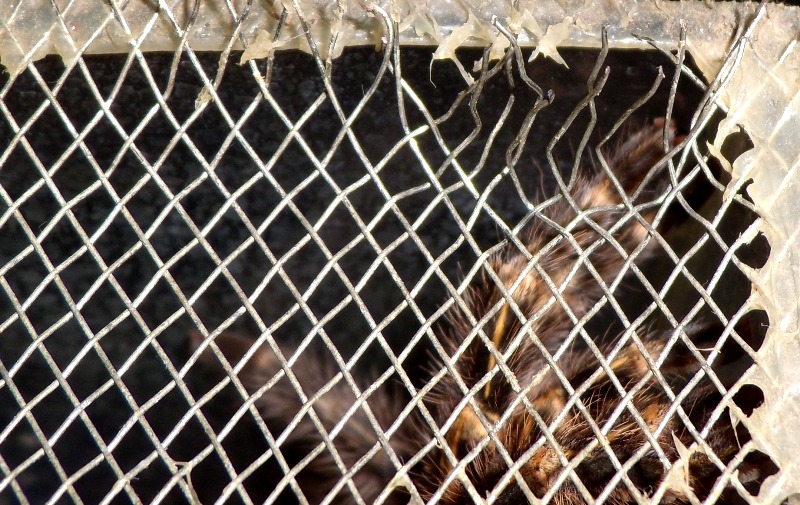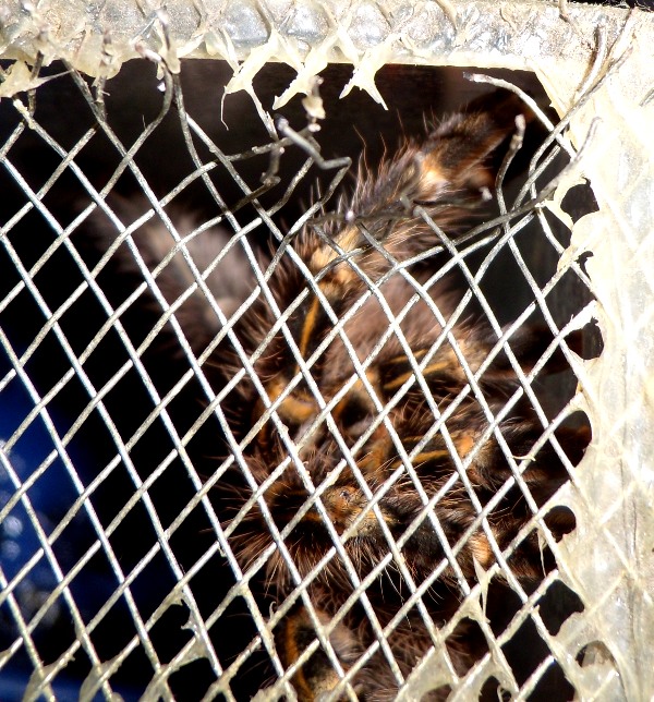 Планомерная и длительная работа хелицер граммостолы на сетке вентиляции. Выгибает прутья во вне. Хитрая.  Поработала часок с сеткой - идет отдыхать на целые сутки.