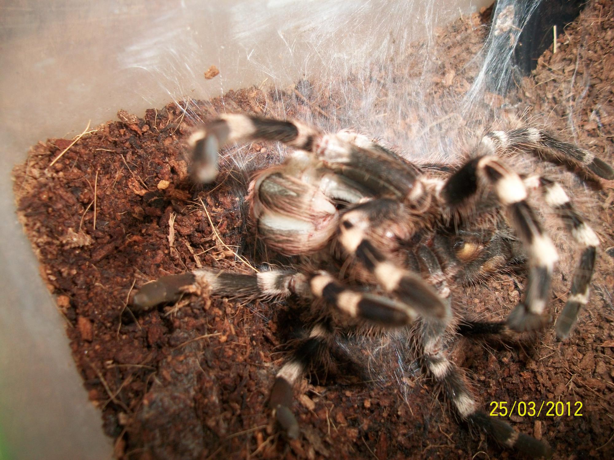 мой первый паучище, достался мне довольно крупным уже) Живет пока во временномподарочном терре. Вчера отказался от еды, надеюсь, скоро перелиняет. Толстяк