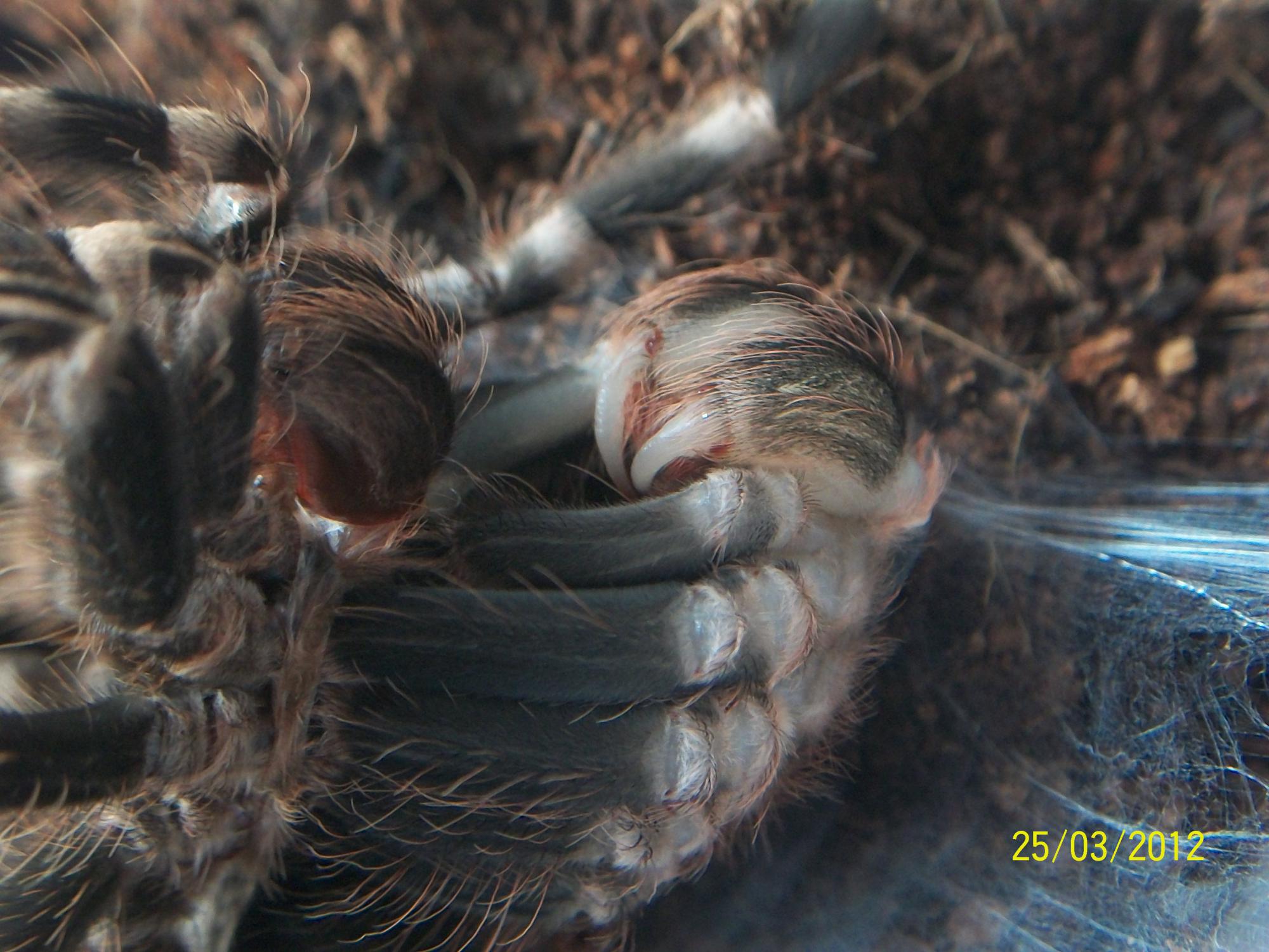 В отличие от Acanthoscurria geniculata имеет немного другой белый рисунок на конечностях.