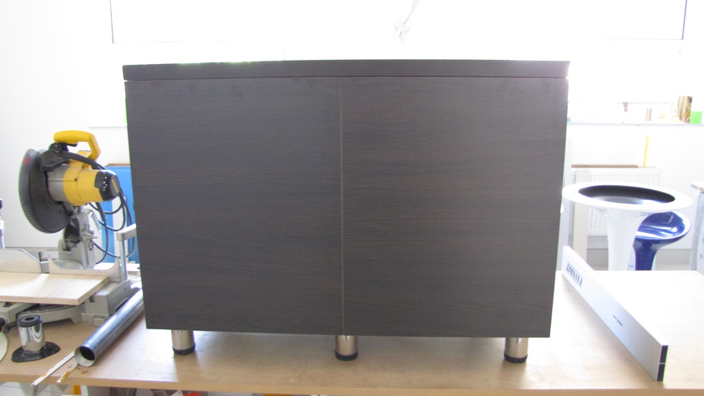 Прошло почти два месяца со дня покупки аквариума. Почти готова тумба осталось развести по ней электричество и установить стойку на которой будет висеть светильник.Тумбу посчитал мой друг строитель-конструктор на нагрузки скручивание и тд и тп. Сделана из 18мм ДСП столешница с двойного 18мм ДСП ,но это только для красоты. С ножками целая история в продаже не нашел ножек которые мне нужны и которые мне понравились (с регулировкой и чтобы несли минимум 80кг каждая)Эти были сделка с совестью)))) Испытывал их на работе на прессе без доработки едва выдержали 70 кг после моего "тюнинга" стали выдерживать 245кг)))))Светильник содрал с АДАвских там черновой вариант делал с не совсем хорошего алюминия просто собрал чтобы посмотреть как получится.Буду делать еще только покрасивше будет исполнение.Надеюсь еще через месяц буду запускаться))УРА! не судите строго)