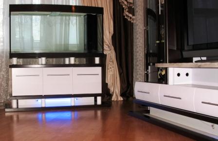 Аквариум уже не первый, до этого были объемом 100 и 200 литров. Сейчас хочу заказать аквариум 330 литров (125х45х60 см). Прошерстил по Интернету кучу фирм-изготовителей и остановился на аквариумах производства фирмы "Акватика, г.Харьков. Стоимость у них такой банки 1269 грн. К нему же хочу докупить крышку (ПВХ + покраска под цвет мебели). Тумбу под аквариум хочу заказать у фирмы , которая уже делала мне мебель в эту комнату (чтобы материалы и стиль были одинаковы. Ессно предупреждены будут при изготовлении для чего делается тумба).