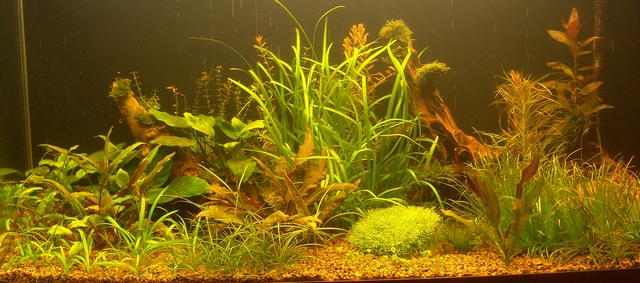 Решил и я себе травничек соорудить. Сам клеил аквариум форма трапеция с левой стороной 350, правой – 550, задняя стенка 1000 при высоте 500. Хотелось получить нечто вроде аквариума с растениями. Для успешного выращивания растений понимал, что нужно соответствующее освещение, СО2, УДО, заряженный грунт ну и все остальное (вода, подмены, время освещения и т.п.). Банка уже готова. Постепенно приобретал лампы, внешник, экспериментировал с СО2 от браги, но остановился на баллонной системе. Параллельно на работе в аквариуме выращивал растения с целью пересадки в домашний. Как бы со всеми вопросами разобрался… Вот только беспокоил меня вопрос создания холмов, а точнее удержание рельефа и подложка питательная под грунт. Готовая подложка от ДЕНЕРЛЕ, АДА, ТРОПИКА мне по цене не подходила, да и сомнения закрались после прочтения нескольких статей про запуск травников на садовой земле. Детально изучив данный вопрос – пришел к решению ПРОБОВАТЬ.