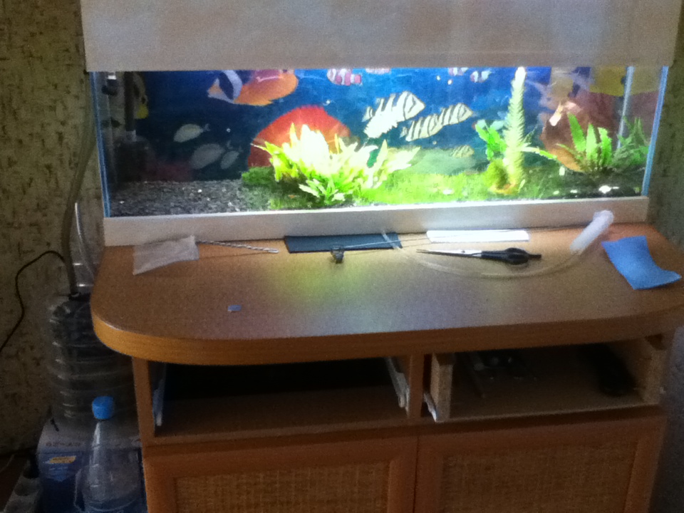 На вході перед керамікою додав губку вирізану під розмір, вугілля не ставив, кинув у вхідний отвір капсулу бактозиму. Під з'єднання довелось дати ФУМку - прокапували. Запуск легкий і безпроблемний, стоїть біля акви, працює практично беззвучно. Замовив нове покривне скло з вирізами під трубки.