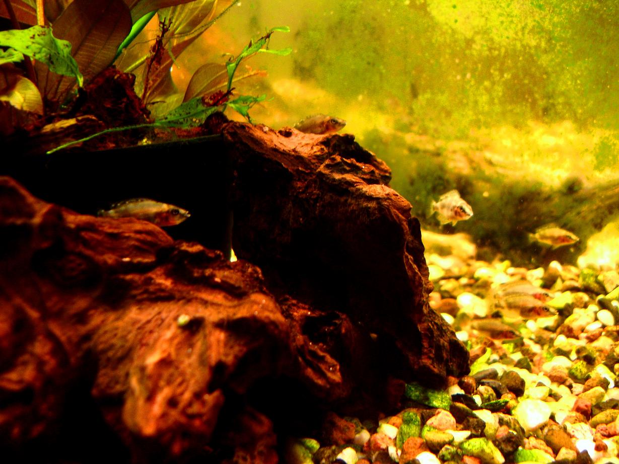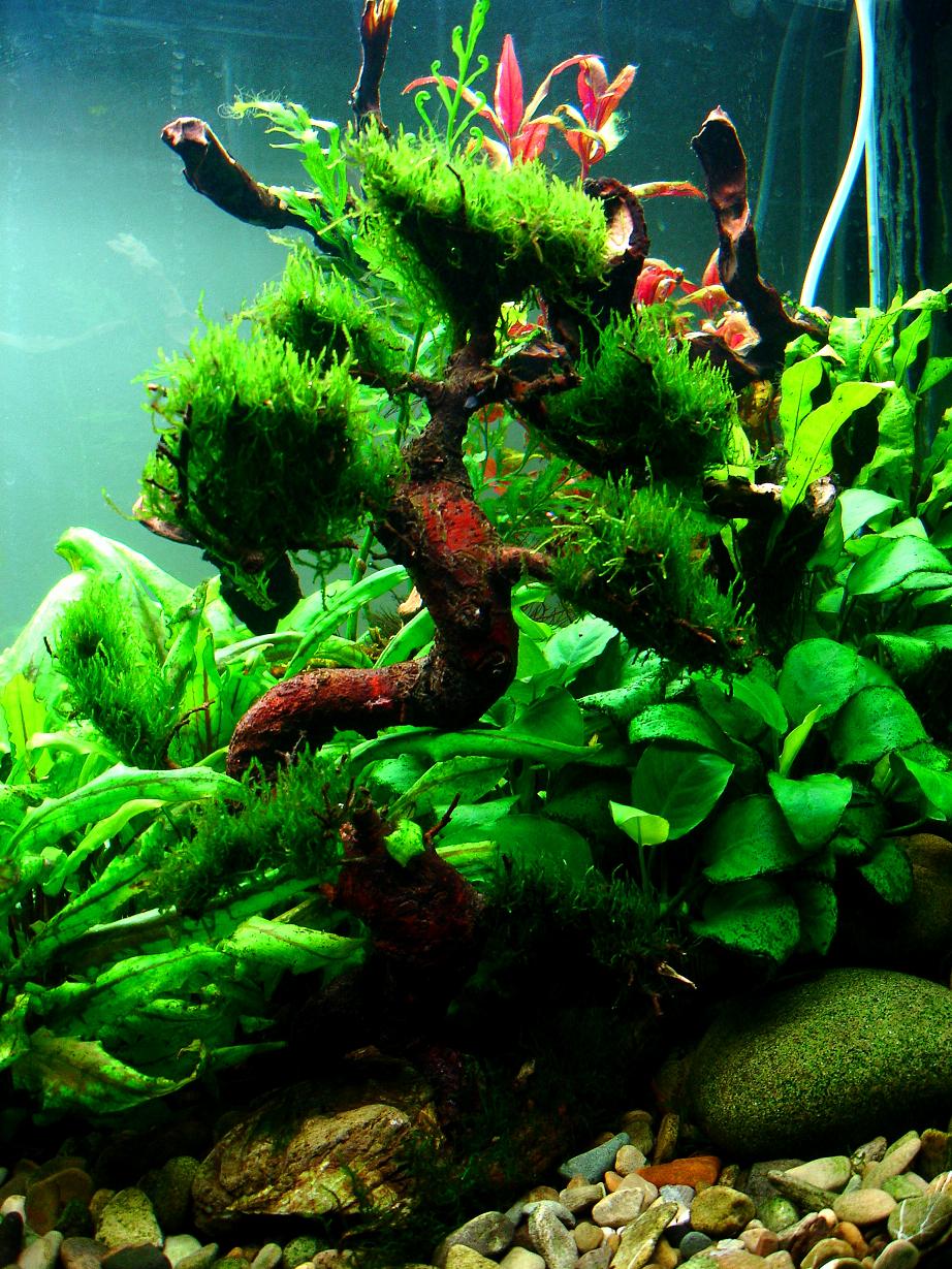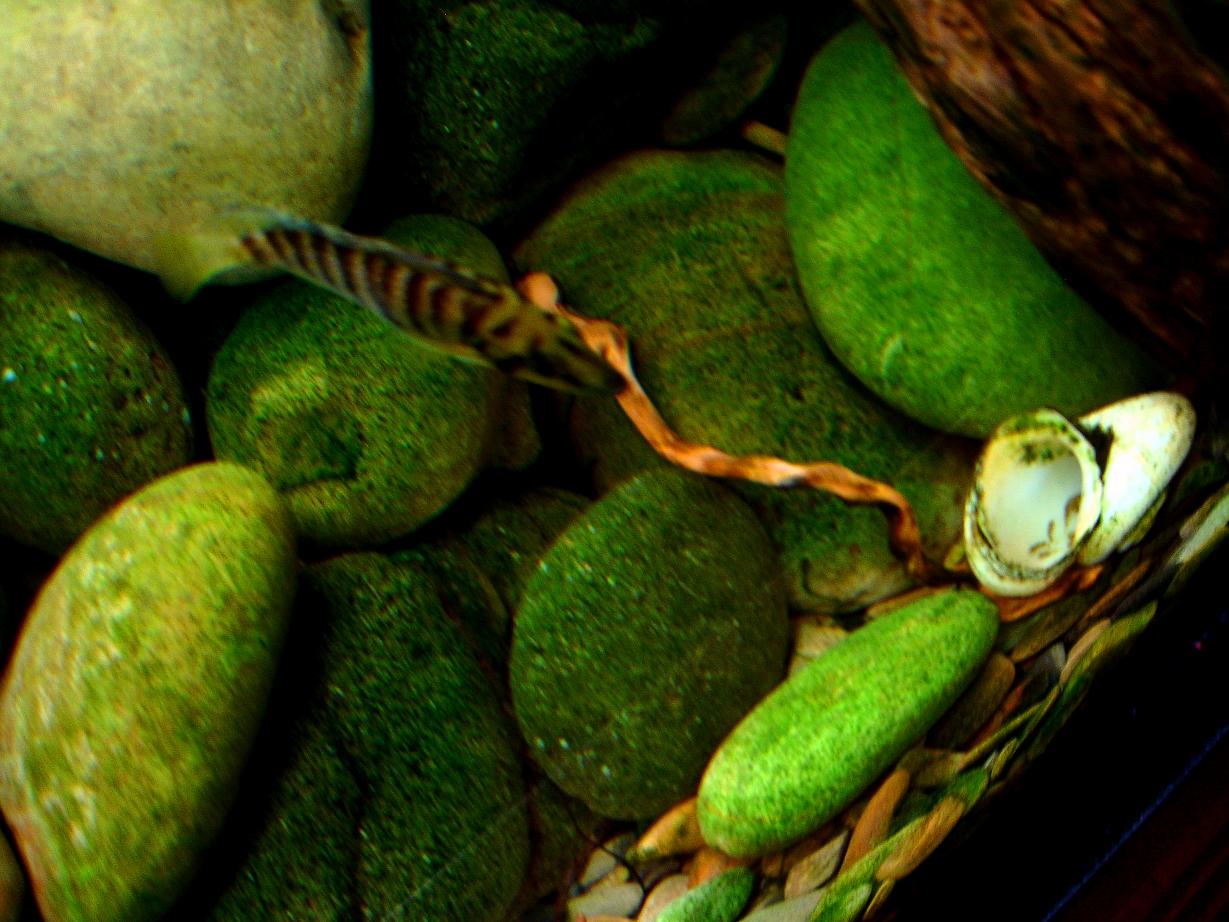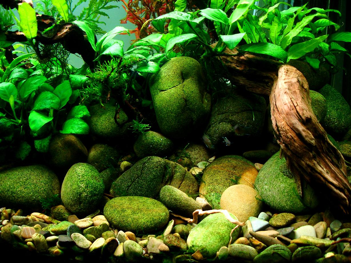 прошло пару недель.. растения и камни покрылись водорослями..