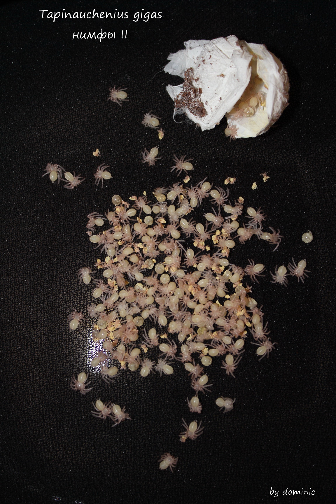 кокон был отобран с нимфами 2ой стадии, сейчас уже паучки 1л