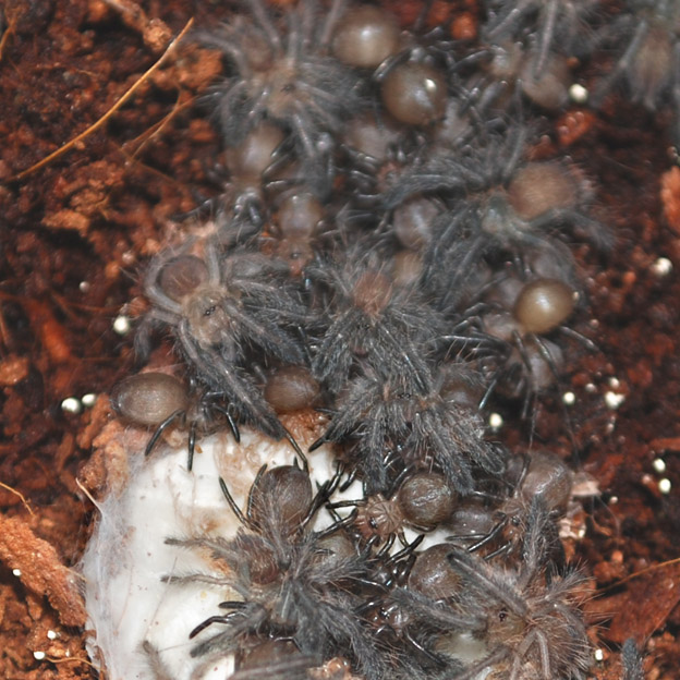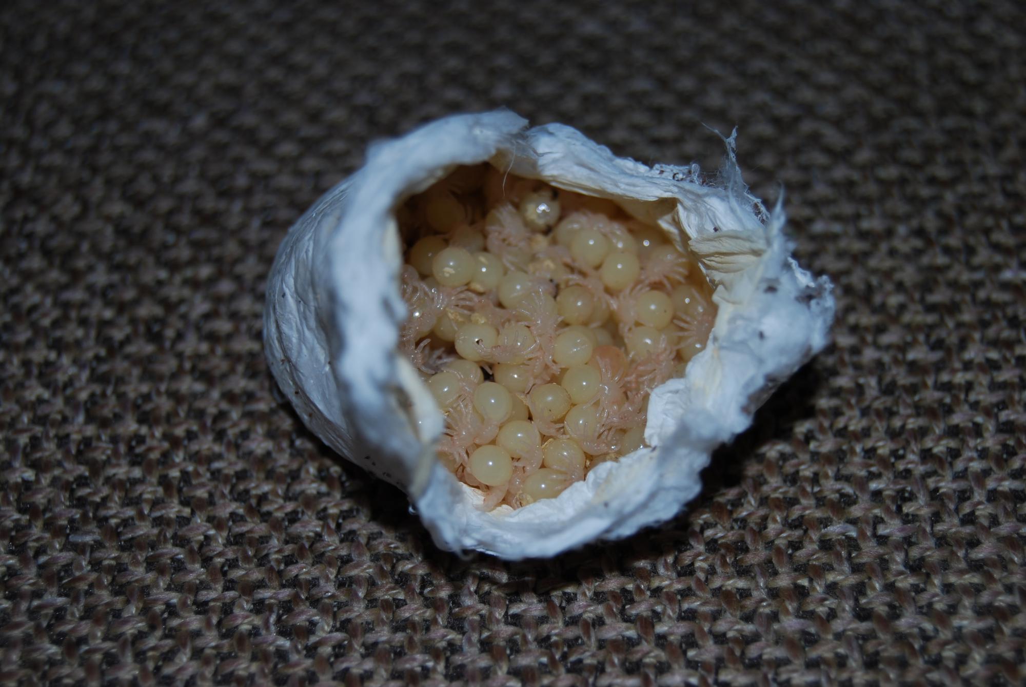 Кокон не забирал.Пауки перелиняли в л1 вместе с мамой, 100% рождаемость.