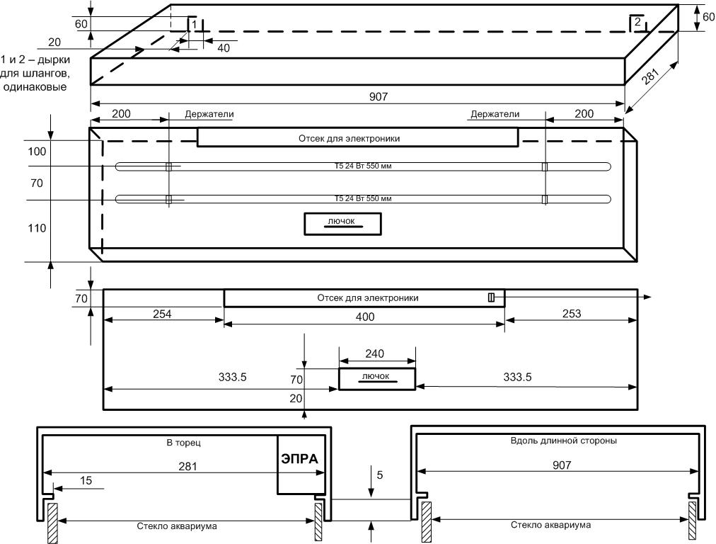 - предназначена для прямоугольного аквариума размерами 1000х4050;