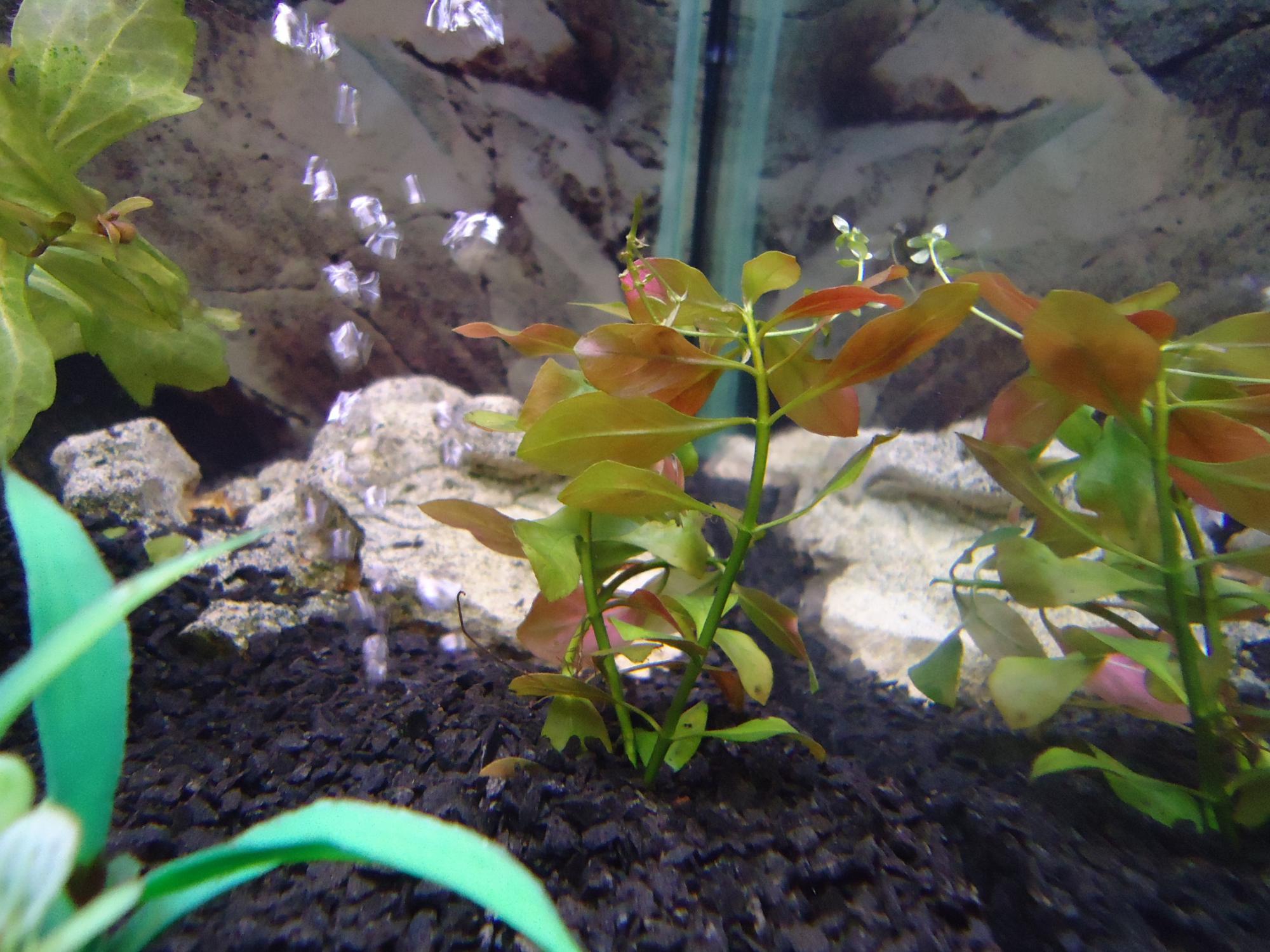К.Кассельман пишет про людвигию дугообразную "Подводные листья сидячие,узколинейные,,длиной до 4 см,шириной 3 мм,от зелёного до красного цвета."