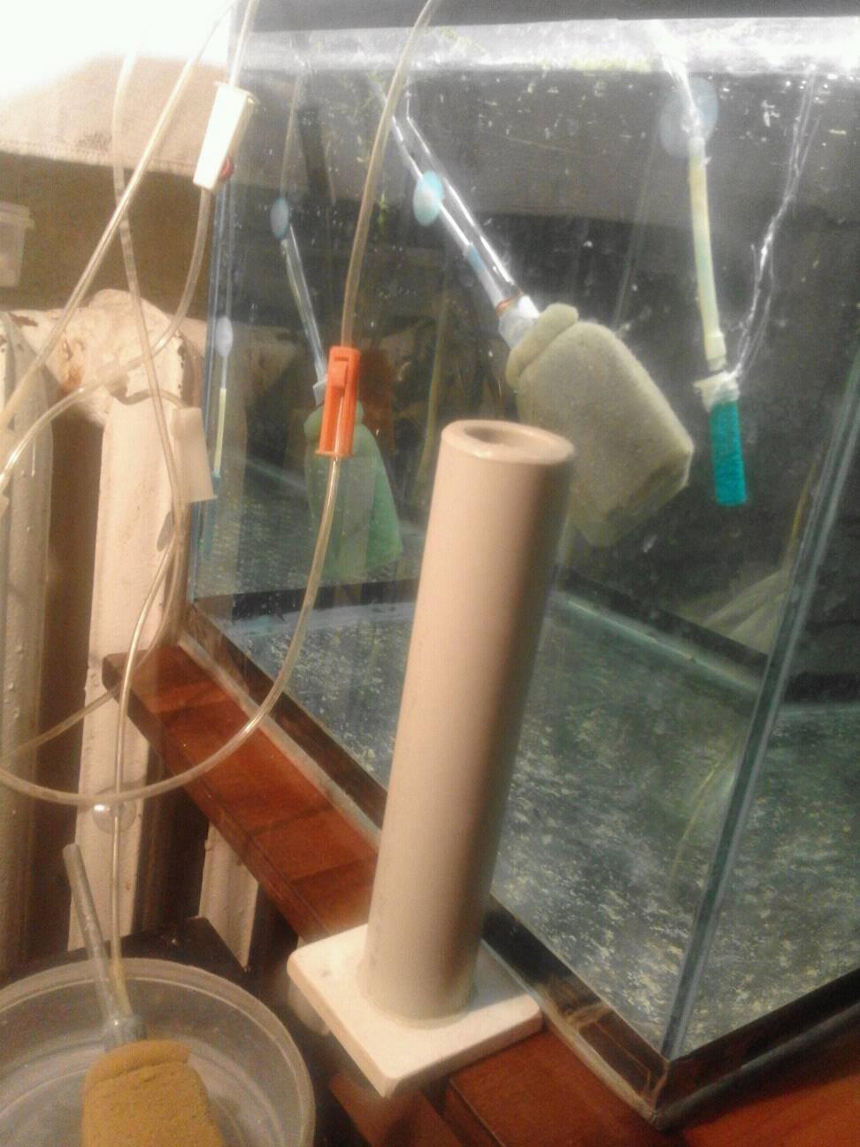 Самодельный.Применяется для отсадника в маленький аквариум мальков,заболевших рыбок или для нерестовика.Высота на 3-х литровую банку.Работает от компрессора.На один компрессор можно подсоединить до 5-6 таких аэрлифтов.Это одновременно и подача воздуха и фильтрация.Теперь у вас мальков никто не съест.цена 20грн