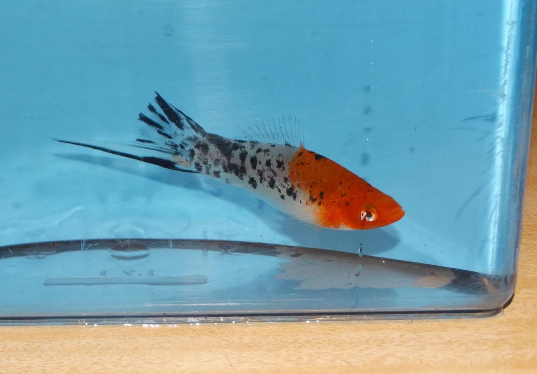 Субъективно самец на фото 4,5 по цвету и черному рисунку/крап/ - близок к идеалу . Черный крап не сливается в сплошные черные пятна , что есть "большой гуд" , так как большие черные пятна , особенно в начале и на самом хвостовом плавнике в 90 % случаев , рано или позже переходят в меланому .