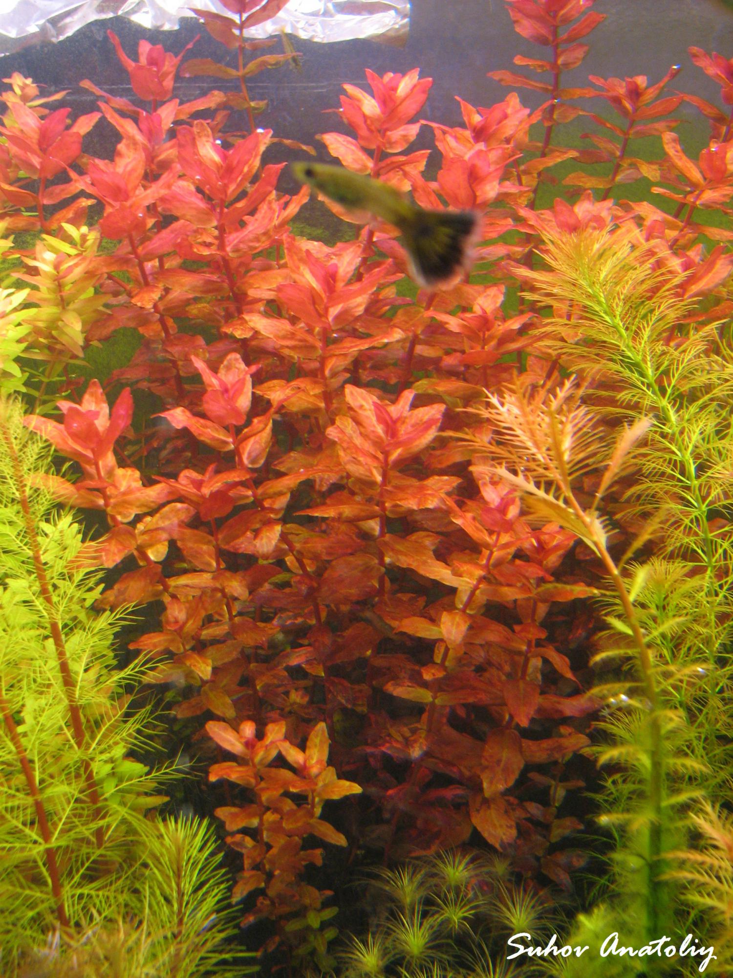 Аквариум 200 л. (100 длинна, 50-высота, 40-ширина). из растений- 2 вида анубиасов, 4 видов эхов, эллодея, 2 вида валлиснерии и др.(названий не знаю). рыбы- 8 гурами . 1 лабео, 2 барбуса, 9 анциков, 4 акары.