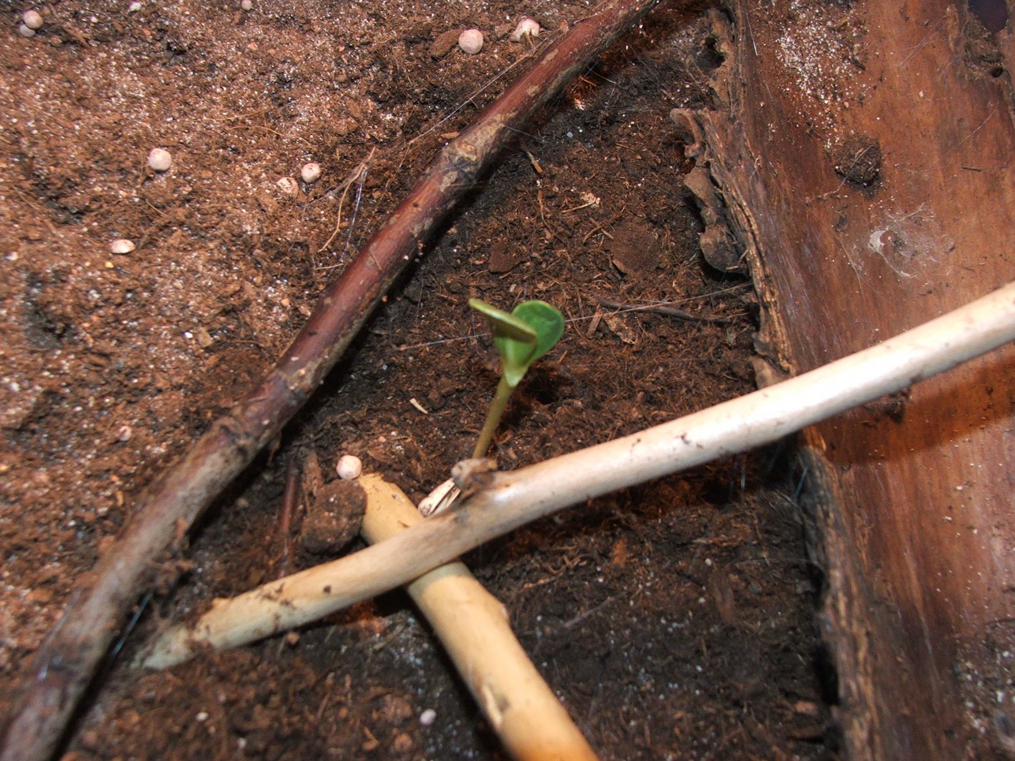 у меня подобное выростало. это из субстрата появилось, причем когда подросло походило на бобовые.