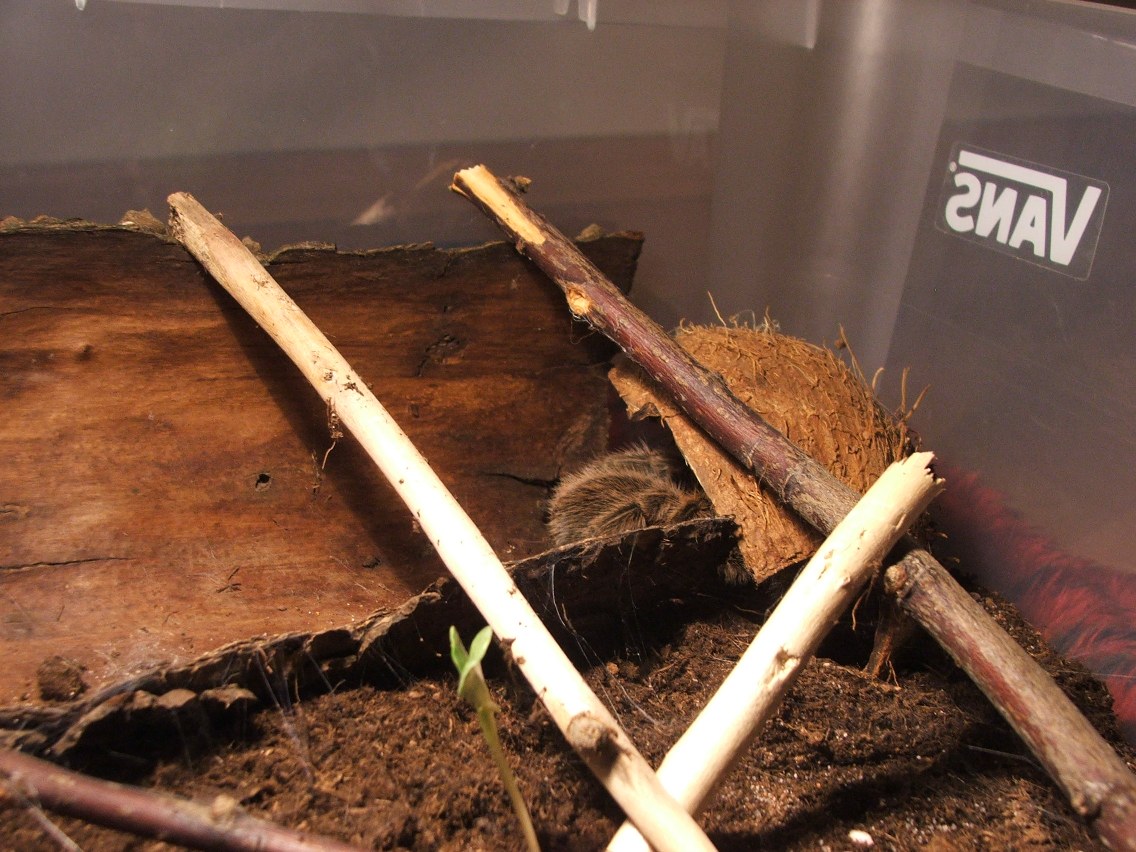 Здравствуйте! У меня есть пара вопросов. 10 дней назад взяла 2х летнюю Grammostolu rosea. Пока еще не кормила, но питается она новорожденными мышатами. Сегодня она себя странно вела,чесалась или чистилась,всю себя полностью, в основном хелицеры. Это нормально? Девочка она здоровенькая,активная, в первый же день на меня почесалась,зудело 3 дня. У нее пока пластиковый террариум(а точнее бокс) 43x33x18. Посадила ей туда цветок цикломен,начал быстро рости,а еще появился недавно росток посреди террариума, по-моему это подсолнух-) оставить его расти или лучше выкопать? Спасибо