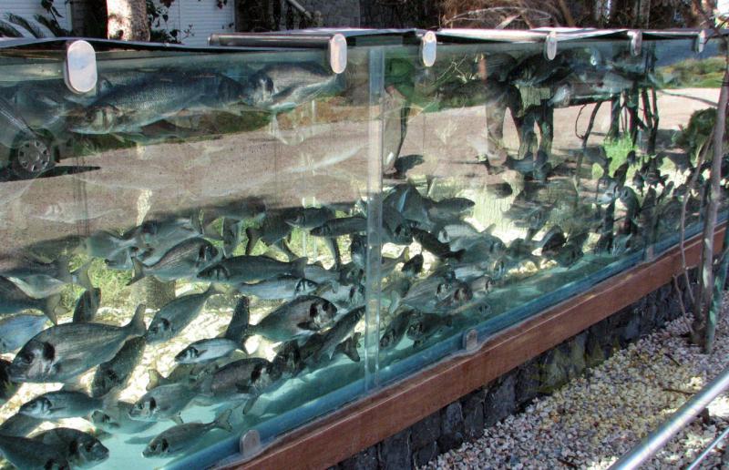 Житель Турции построил возле своего дома забор-аквариум. Длина аквариума 50 метров. В нем плавает около тысячи рыб. Вода берется из моря и ее замена происходит непрерывным циклом .