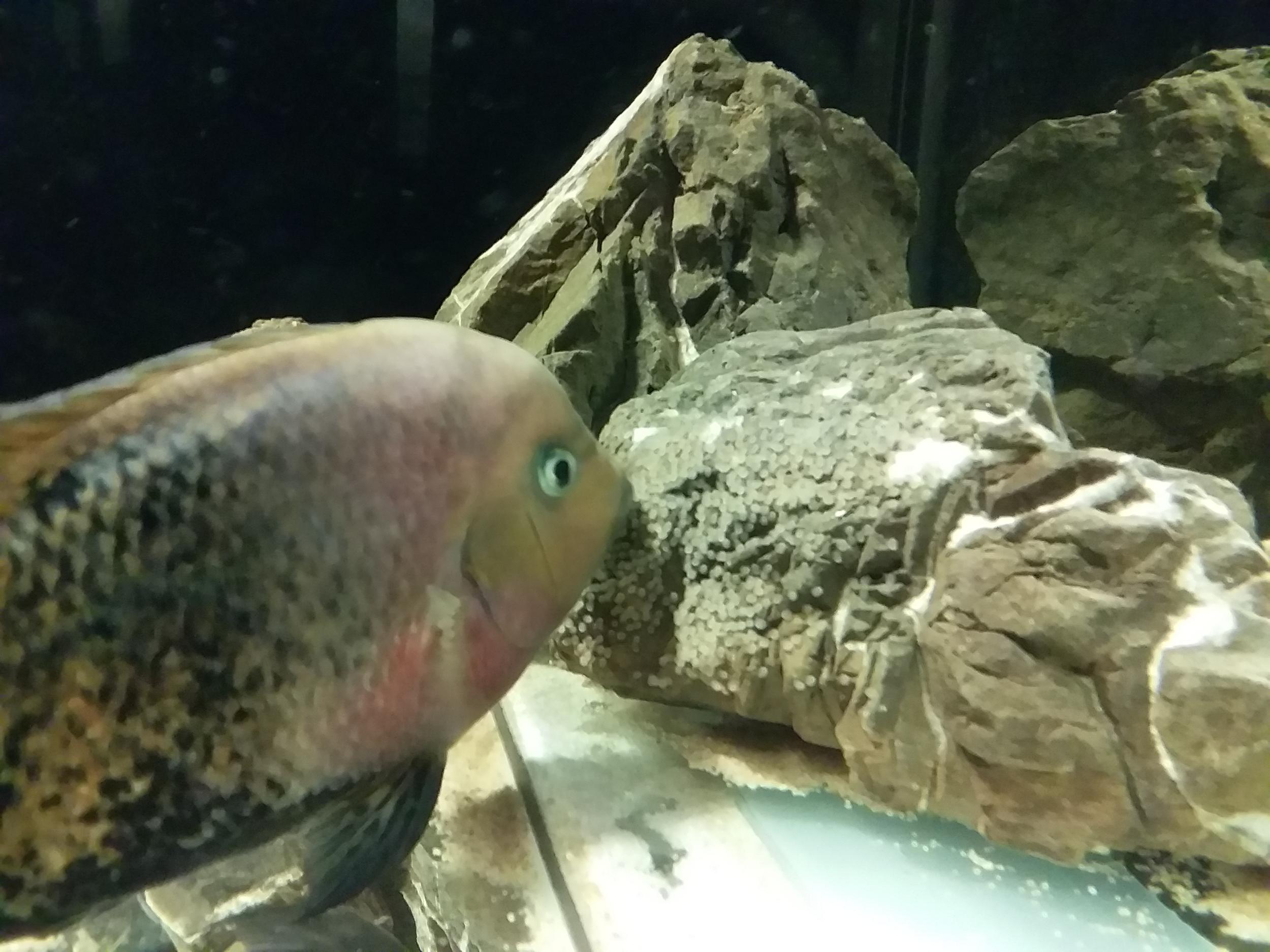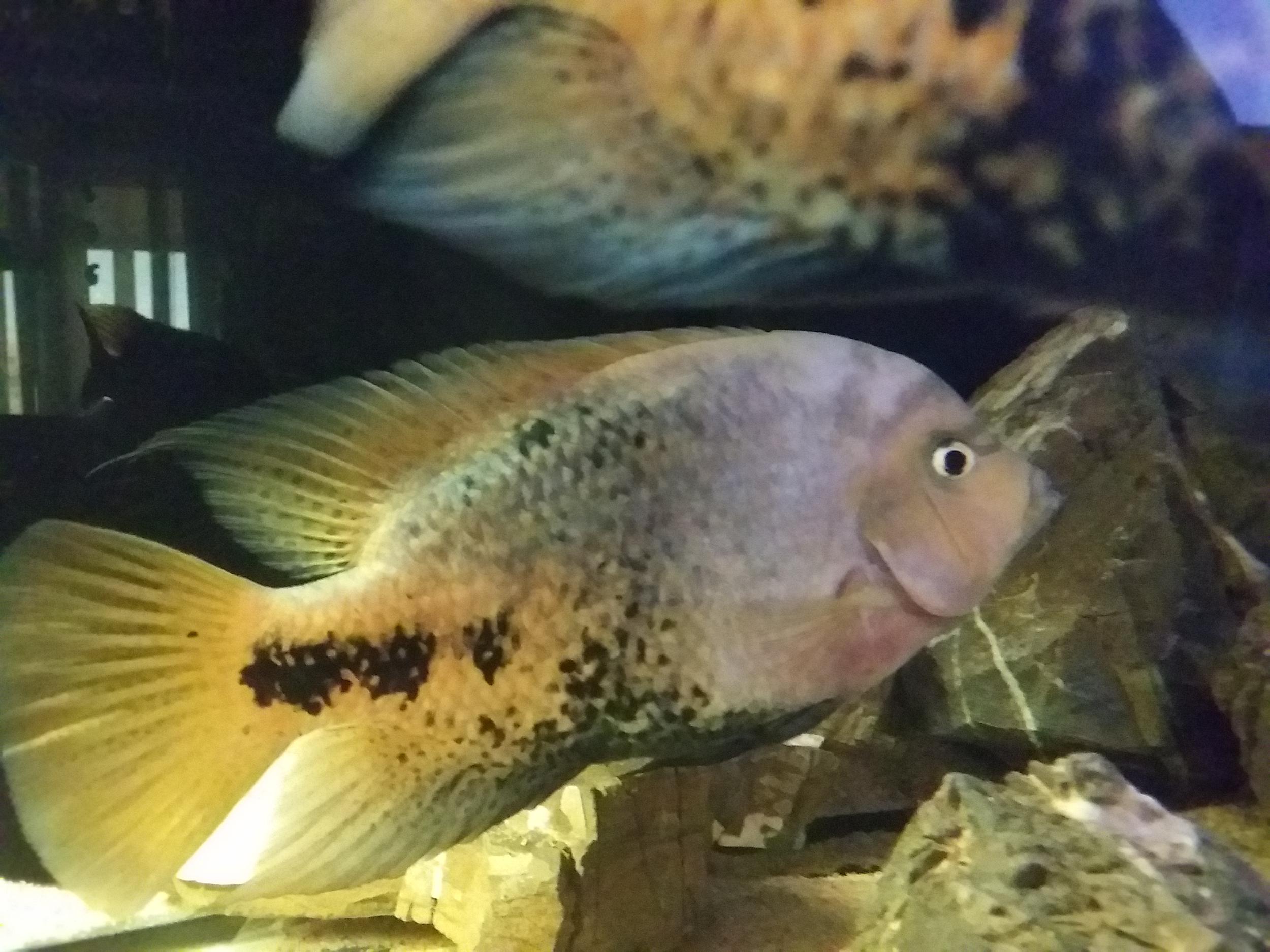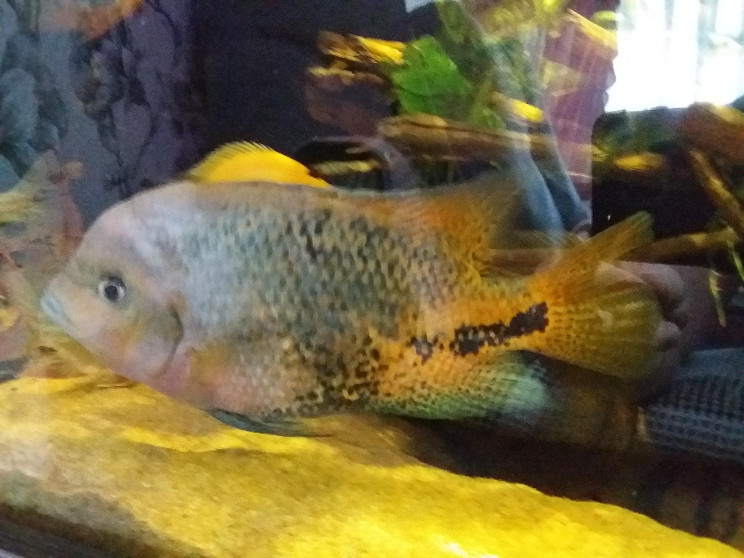 Отдам молодую самочку Манагуанской цихлазомы 18 см за килограмм апельсин , которая осталась одна после того как рыбы поделились на пары.