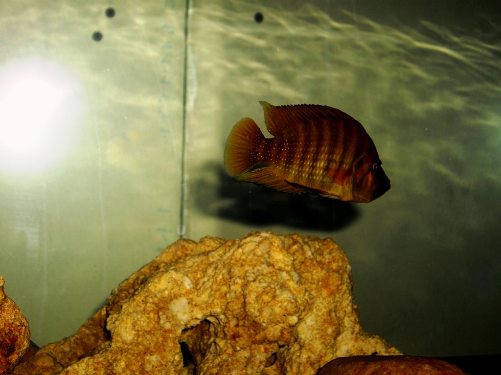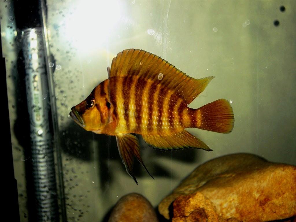 Это рыба моего друга Тома, который занимается таньганьикой. Но он ушёл в сторону травоядной рыбы и распродаёт остатки лампрологусов.