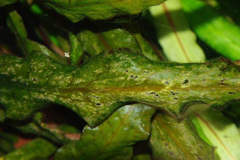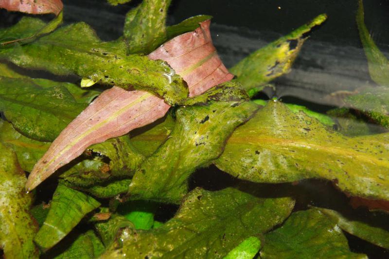 Здравствуйте! Подскажите что это и как его побороть!? Вот фото раз и два, но мне кажется это разные водоросли. Эта дрянь на листьях что у поверхности (не обращайте внимание на поломанные листья, это улитки и сомики по ним так лазят!). Когда срываешь как волосинки темно черно-зеленого цвета, растут из одной точки (очаг) как кустики, появляется на Эхинодорусе и Криптокорине, а другие как паутина запутанные зелённые сидит Альтернантере розовой. Ещё есть болячка забыл как она называется в виде капелек зелёных на стекле обычно появляются (смываю щеткой на магните раз в 1-1.5 месяца), сперва появилась на Анубиас нано (вычитал что его в тень надо, привязал над ним Роголистник и он растёт у света и Анубисику хорошо, все новые листья без болячек и заметно крупнее стали). Но теперь эта зараза появилась и на Эхинодорусе «медведе».