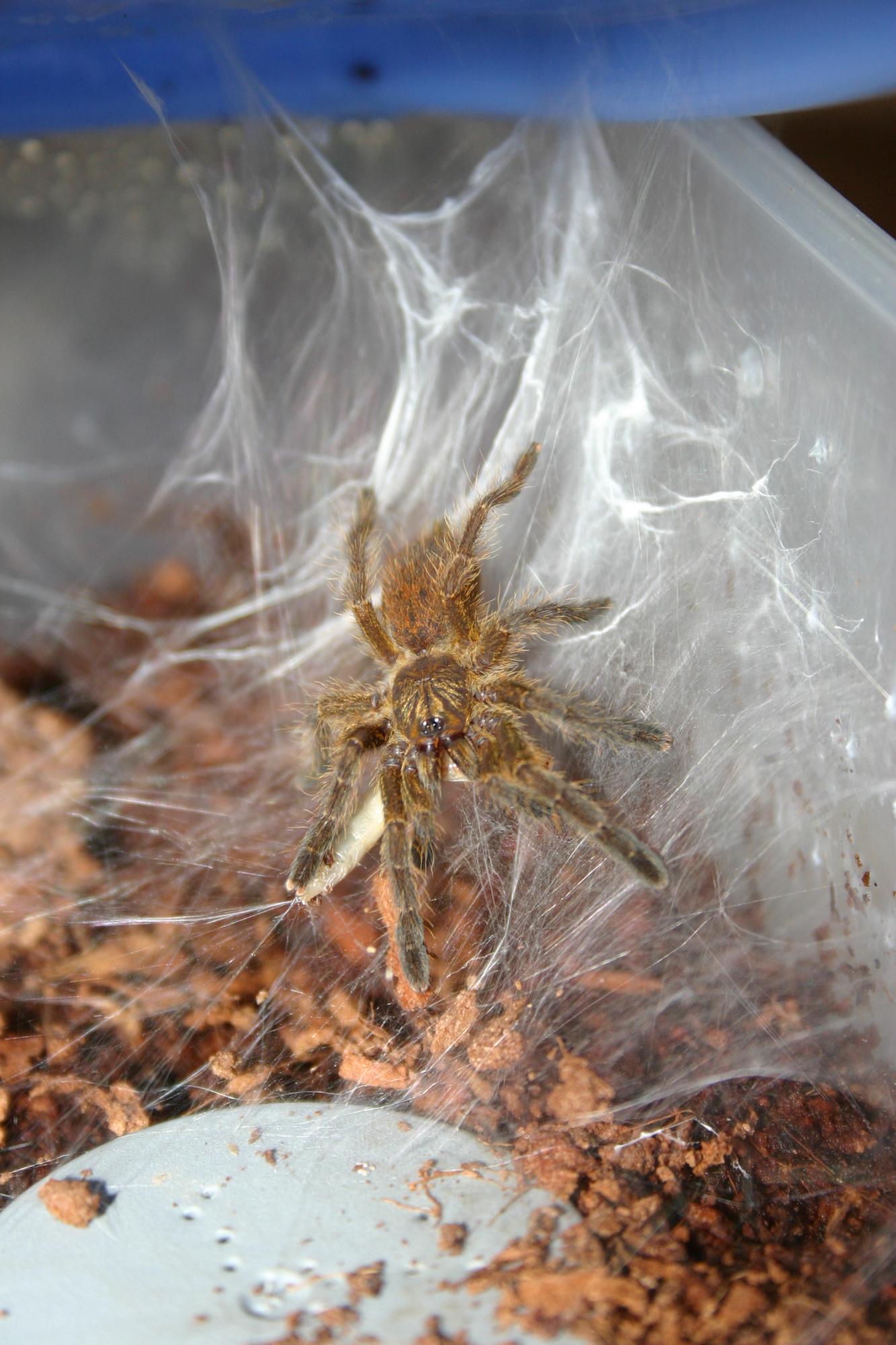 Брахипельма ауратум перелинял(а) в л9.. неделя прошла, но от корма еще шарахается..