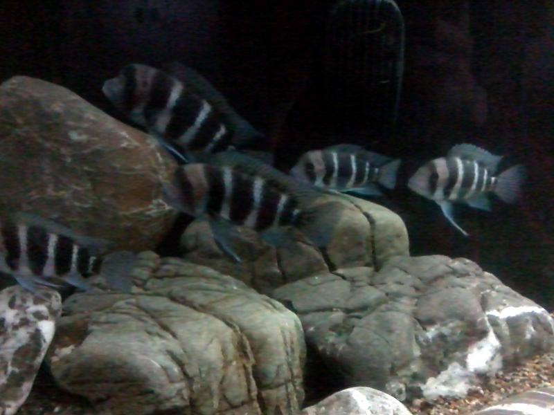 Рассмотрев свой дизайн в очередной раз, кардинально его изменила, убрав все песчаные камни. Стало больше полезной площади, да и фронтоза перестала прятаться. Принцесс всех отсадила, запустила десяток молодых кальвусов, неолампрологусов бушера ''гомби', так любезно презентованых мне Кусто (пользуясь случаем, еще раз скажу спасибо). В скором времени ожидаю новых постояльцев -халинохромиса Бришара от Саши (Dionis).