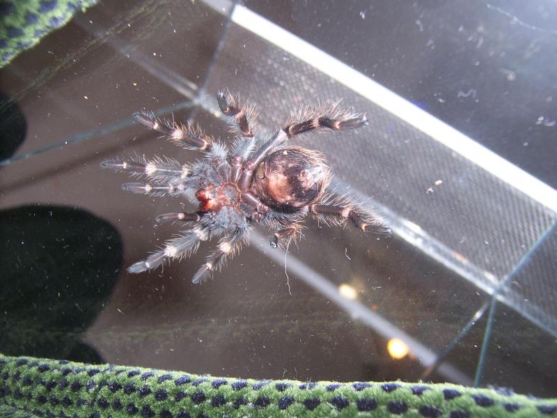 2. Плохое фото , снизу возможно паук пообдирал короткие волоски ,сверху -возможно то, что и с розеей ,активный счес ногой. Очевидной грыжи не наблюдаю. Нужна макросъемка. Емкость по размеру для 9л не гуд ,т.к. вид слишком уж резкий и пугливый. Кстати,не любит пересадок.