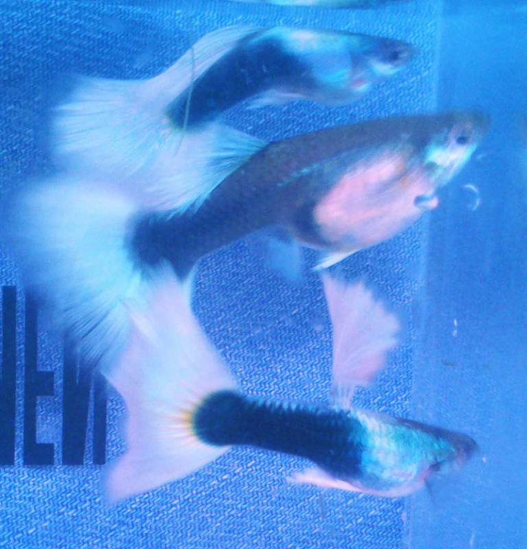 Нет , как обычно примерно пополам - в этом помете обычная форма плавника примерно 40 % и флаговые 60 % . С обычным плавником я отсортировал . Просто эта линия на красной фоновой - с белыми плавниками практически нет , единицы . По цвету помет разделился - на чисто красные и черные с красными плавниками примерно пополам , и практически нет/несколько штук , в основном с обычным плавником/ черных с белыми плавниками . На серой фоновой я обвел на фото кружечком.