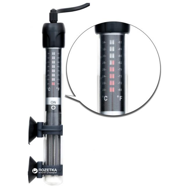 Для аквариумов до 60л. Подогревает воду от 17С до 35С. Имеет противоударный колпачок внизу, чтобы при падении на дно аквариума не разбился.