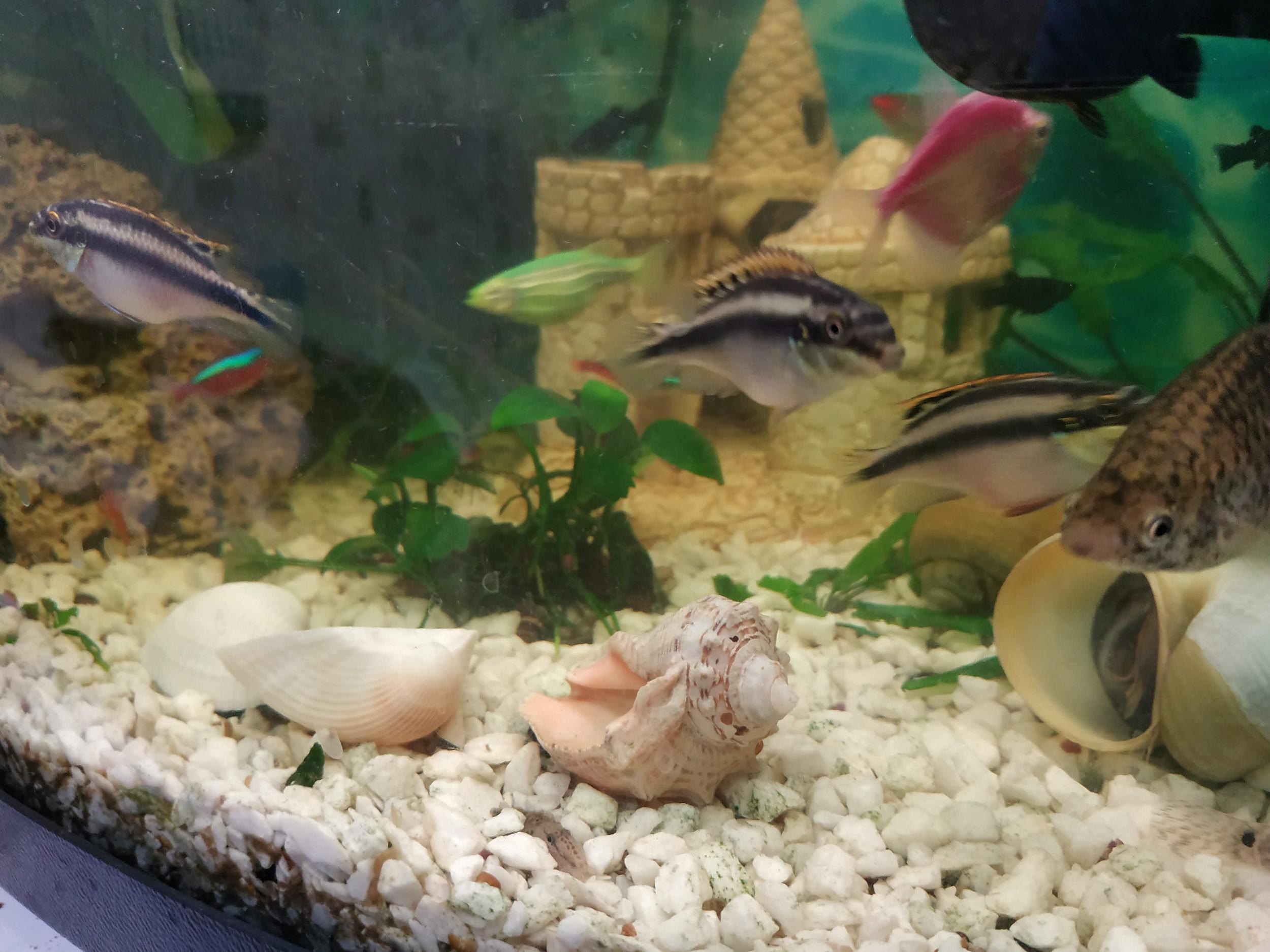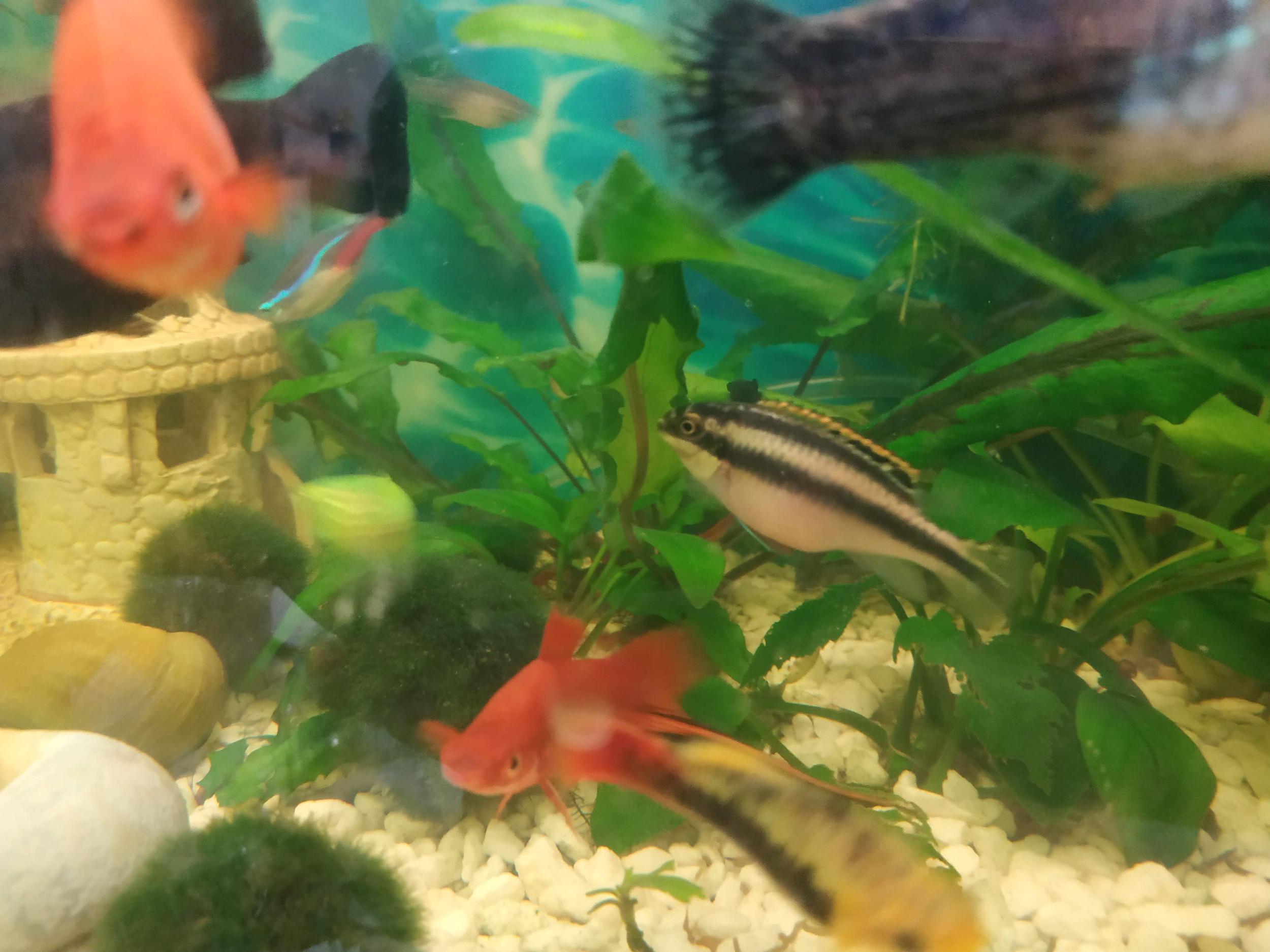 Обменяю одну или две самки попугайчиков (пельвикахромис) на самцов. Возраст месяцев 6.