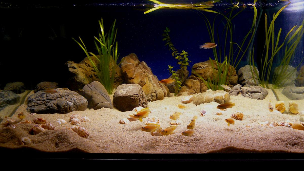У меня в конкурсном аквариуме, на 180 л, который так и остался неизменным, с 4 симилисами, самка нереститься сугубо в самом высоком камне. Скажу больше, ракушки их интересует по скольку по стольку. В основном, они шныряют в расщелинах камней). Любимая норка этой самочки находится на расстоянии 35 см от дна.