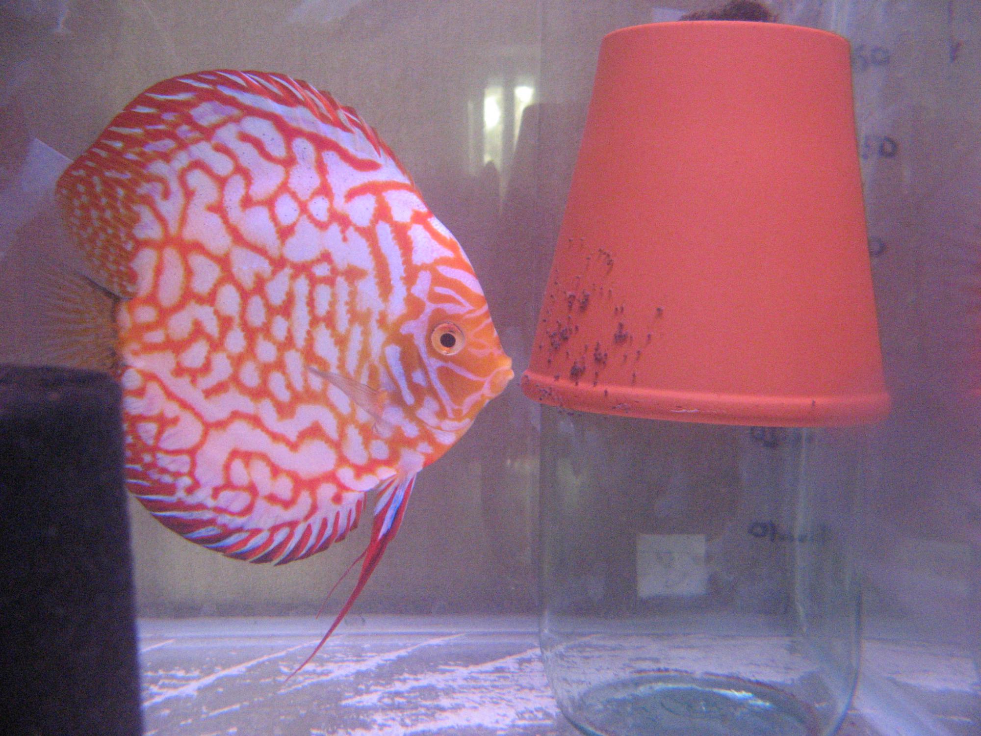 В секретных аквариумах Одесских любителей дискусов,продолжается кропотливая работа по улучшению бело-красных рыб,Одесский пиджен(Скорпион)+Крабовая палочка(Джулиан)=Слава Одессе.