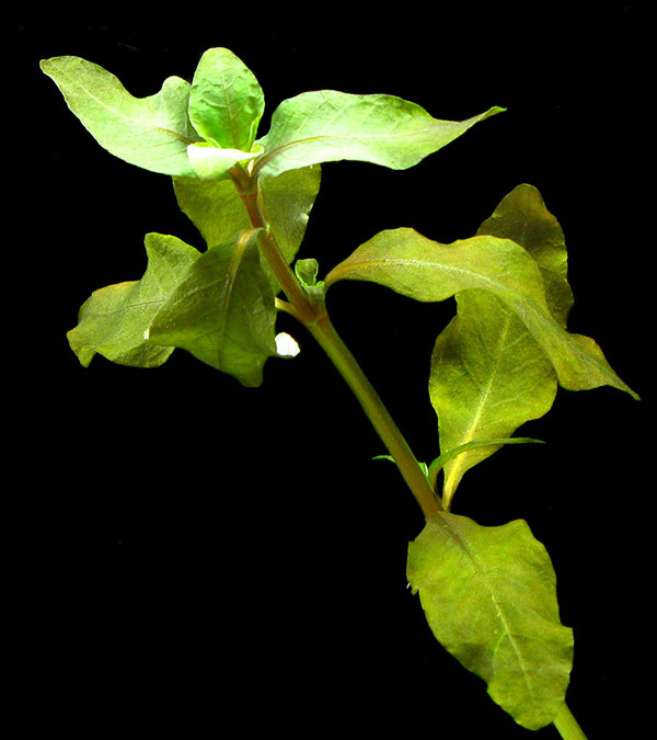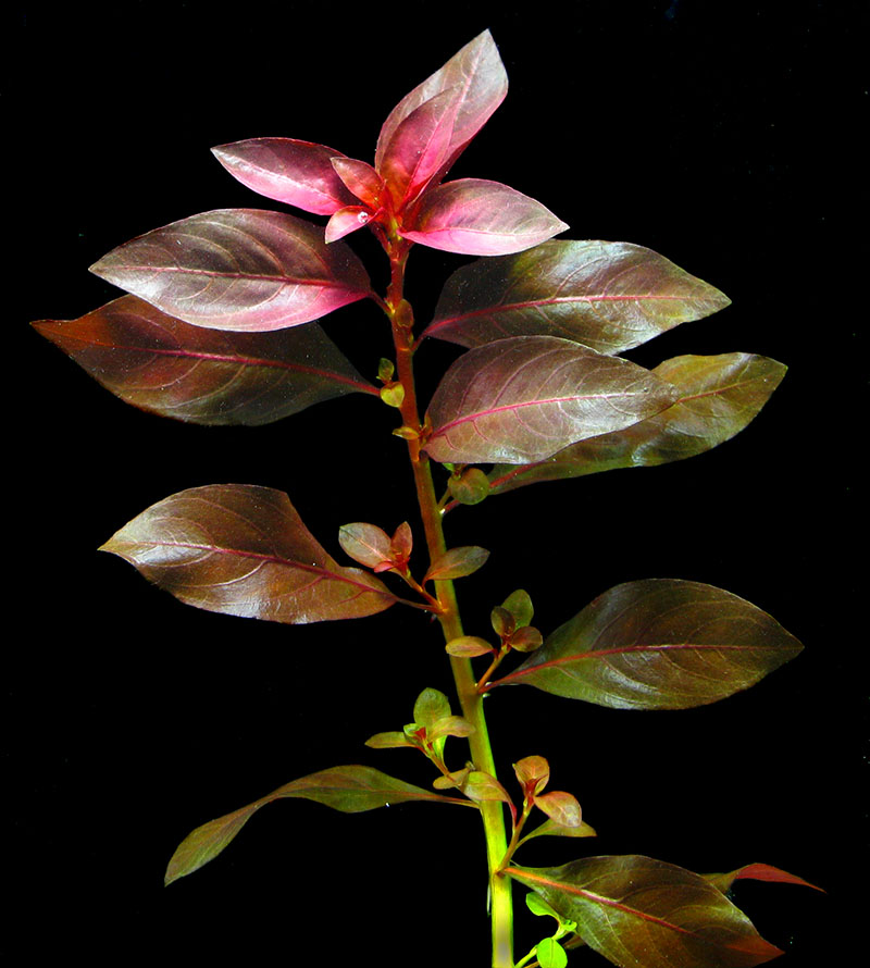 Людвигия овалис (Ludwigia ovalis) Симпатичное, нетребовательное аквариумное растение с небольшими зеленовато-красными овальными листиками. В зависимости от условий освещения, окраска листьев растения может меняться. Верхняя сторона листовой пластинки темно-зеленого цвета, но при достаточно сильном освещении становится красной. Нижняя сторона практически при любых условиях остается очень красной, благодаря этому создается очень красивый контраст. Людвигия довольно быстро разрастается, пуская с основной веточки боковые. В итоге вскоре образуются красивые густые кусты.
