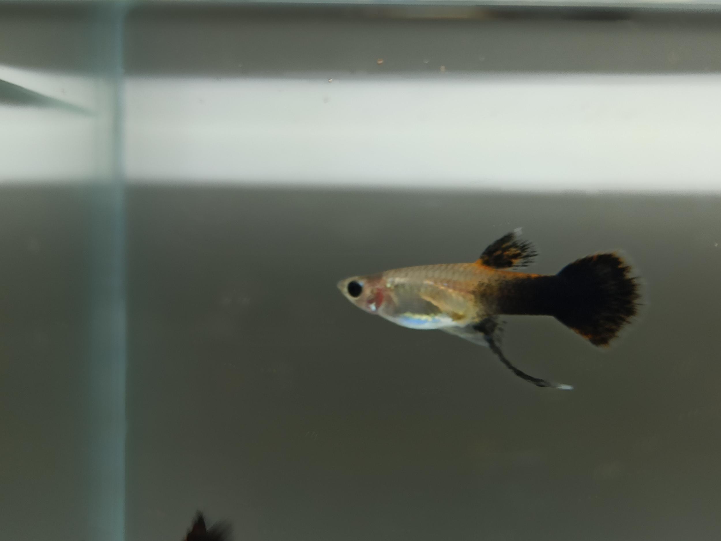 Чистая линия гуппи Pink Tuxedo, с удлиненным анальным плавником. Возраст 5 мес.