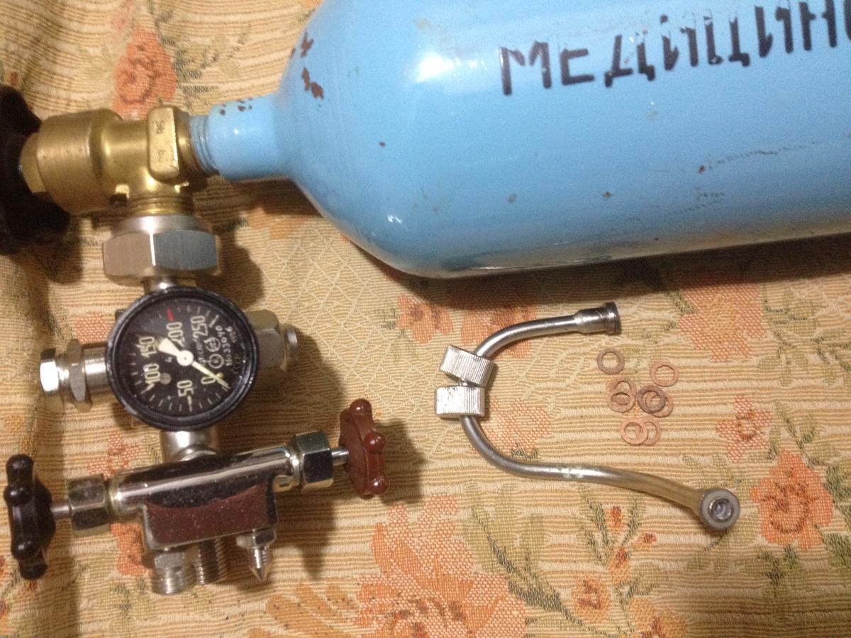 баллон 2л+мед.редуктор(с двумя вентилями точной настройки)-600 грн.
