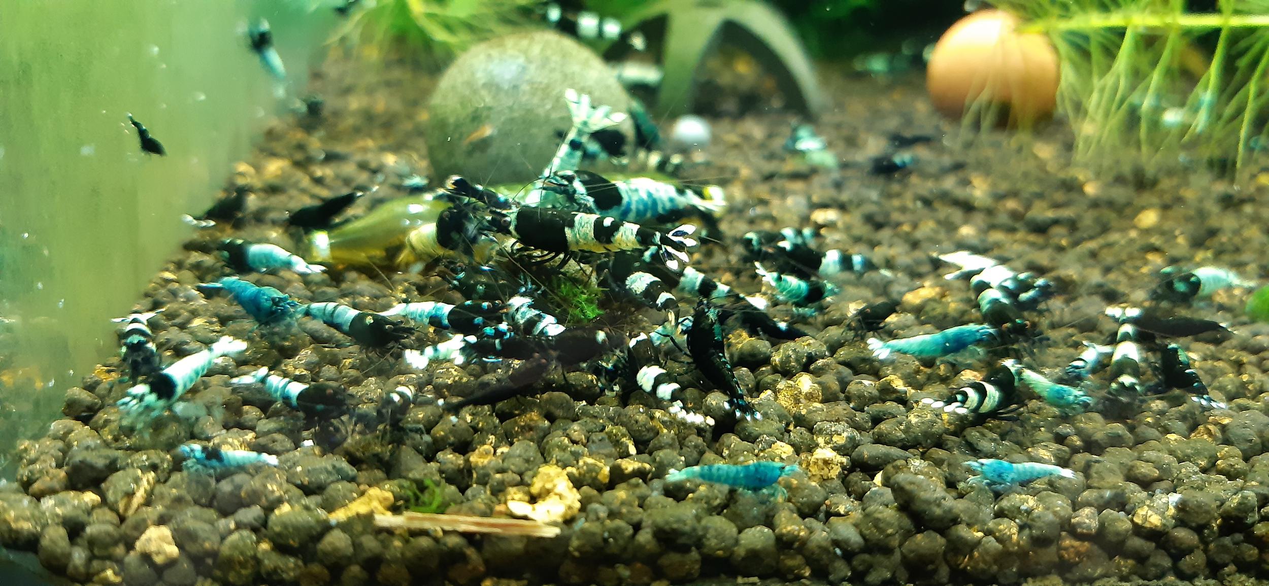 Селекционные аквариумные креветки Neocaridina красная сакура. Выращены в харьковской водопроводной воде.