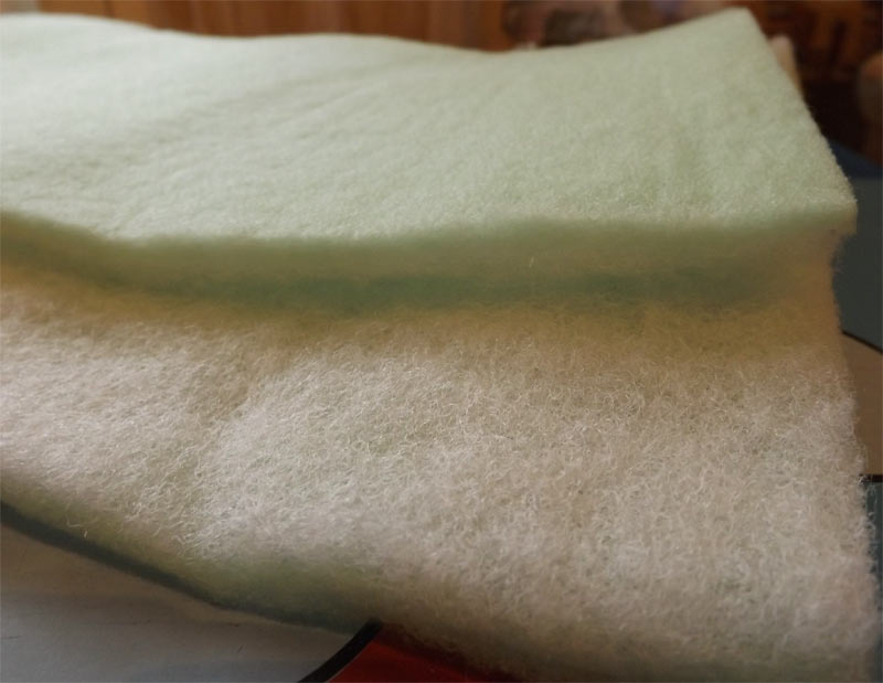 Также есть синепон 120х30х1 см. Двусторонний: зеленая сторона - плотнее, белая - мягкий синтепон (см. фото).