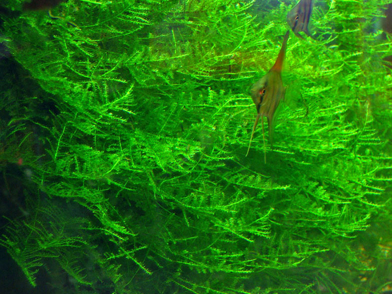 Роголистник темно-зеленый (Ceratophyllum demersum) необыкновенное растение, которое способно принести немало пользы аквариуму. Особенно тому, который или недавно был запущен или в котором очень много рыбы, или там где старый заиленный грунт, так-как растение является очень эффективным очистителем воды от мути и нитратов. В аквариуме его можно просто оставляют плавать на поверхности воды или посадить на задний план. Роголистник хорошо растет при любой температуре, нормально растёт в мягкой воде, но намного лучше в воде средней или в жёсткой. Световой день чем дольше, тем лучше.