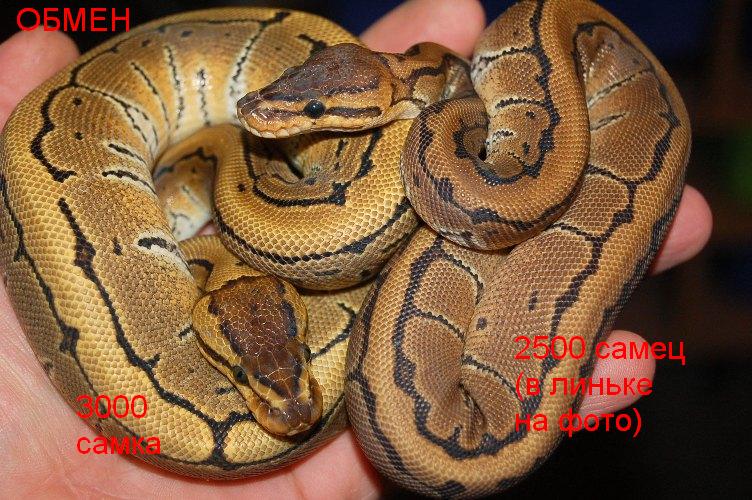 Думаю, не только я занимаюсь живностью разносторонне, поэтому также на всякий случай выложу для обмена роскошную пару подростков королевских питонов морфы Pinstripe собственного разведения. Меняю на кораллы и пр. морскую живность, кое-что из оборудования, соль, химию и т.п. в эквиваленте, короче, кого заинтересовало, пишите в личку..